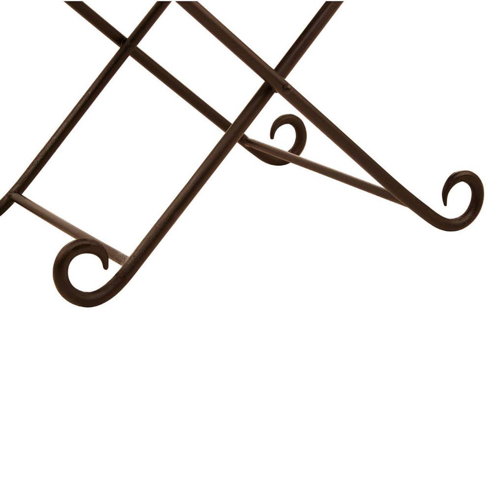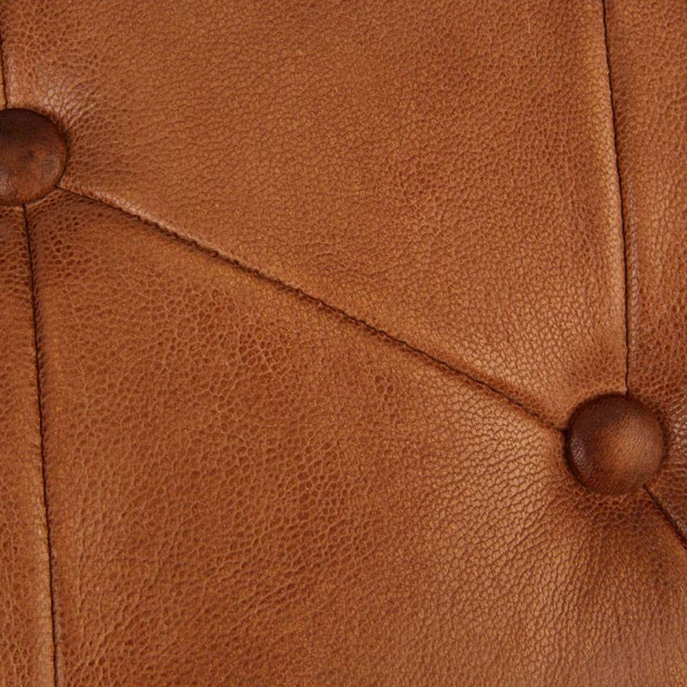 Item Code: 5502972 The sling seat of the Buffalo stool is upholstered with soft brown leather featuring a stylish and minimalistic style. This folding stool features a quilted finish that creates a stately vibe. Thick stitching at the sides add to the textured look. Its legs are made from tough iron, with a scrolled design that adds a decorative flourish to the formal aesthetic.
