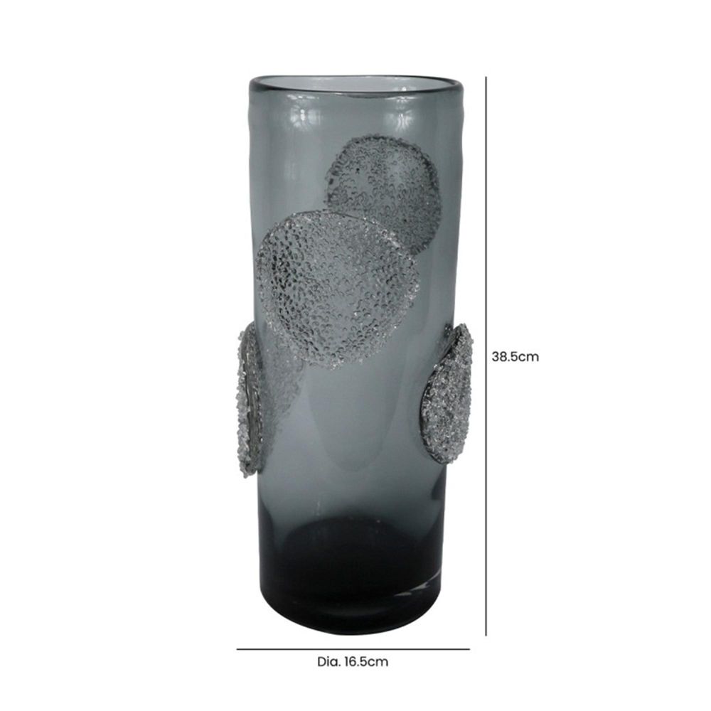 Item Code: SPVS396-L0-GY This 38.5cm Smoke Grey Forest Handmade Glass Vase features a smoky grey hue with forest-inspired tones and a handcrafted design, creating a unique and artistic decorative piece. Perfect for displaying fresh or dried flowers, or as a standalone ornament, it adds a stylish and sophisticated touch to any space. Each vase's handmade nature ensures a distinctive and one-of-a-kind finish.Please note that the product color and finish may slightly vary from the images due to lighting and screen differences.Free Delivery