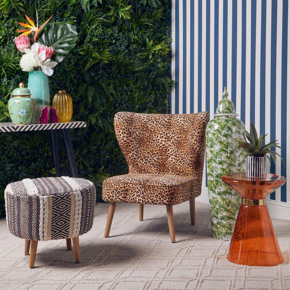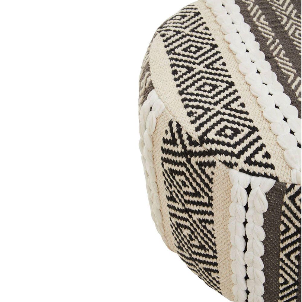 Item Code: 5529586 The Cefena mango wood stool is made from textured grey and white cotton that has a modern and chic look.This stool is crafted from durable grey and white cotton with a modern and unique motif design. While the sleek rich mango wood legs provide support and sturdiness to the stool.