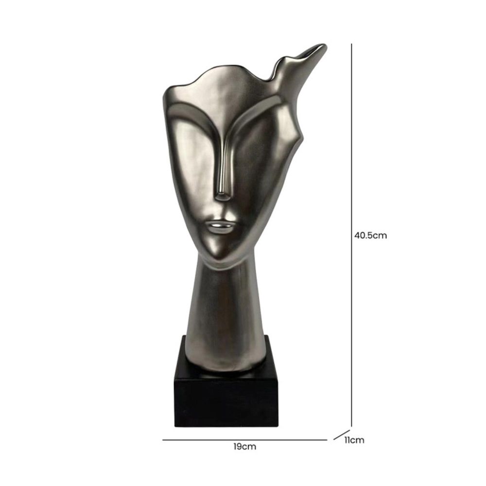Item Code: SP-GW2311-00-SVBL Add a touch of modern sophistication with this 40.5cm matte silver face sculpture on a black stand. Its sleek design and striking matte silver finish make it a captivating accent for shelves, tables, or mantels. Perfect as a standalone centerpiece or part of a curated display, it brings contemporary elegance and artistic flair to any space.Please note that the product color may slightly vary from the images due to lighting and screen differences.Free Delivery