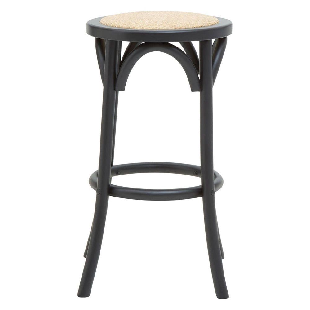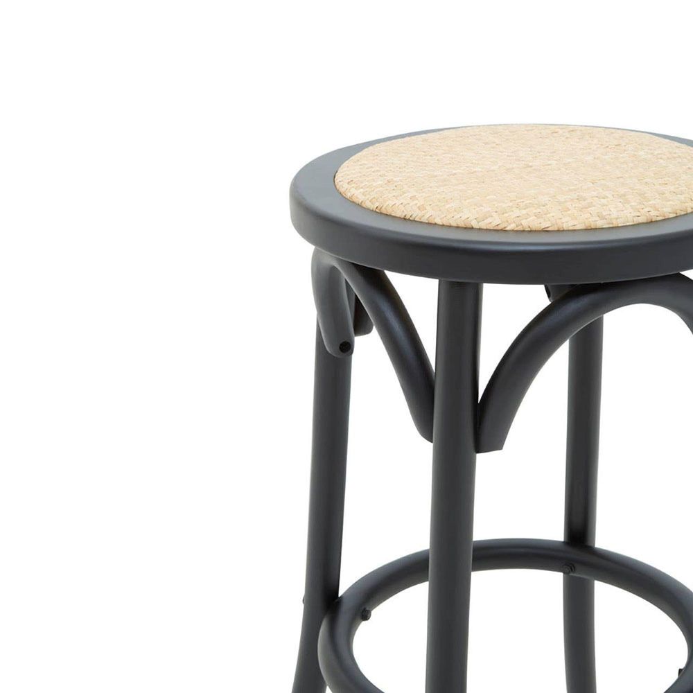 Corso Stool - Round - Black Birchwood and Natural Rattan