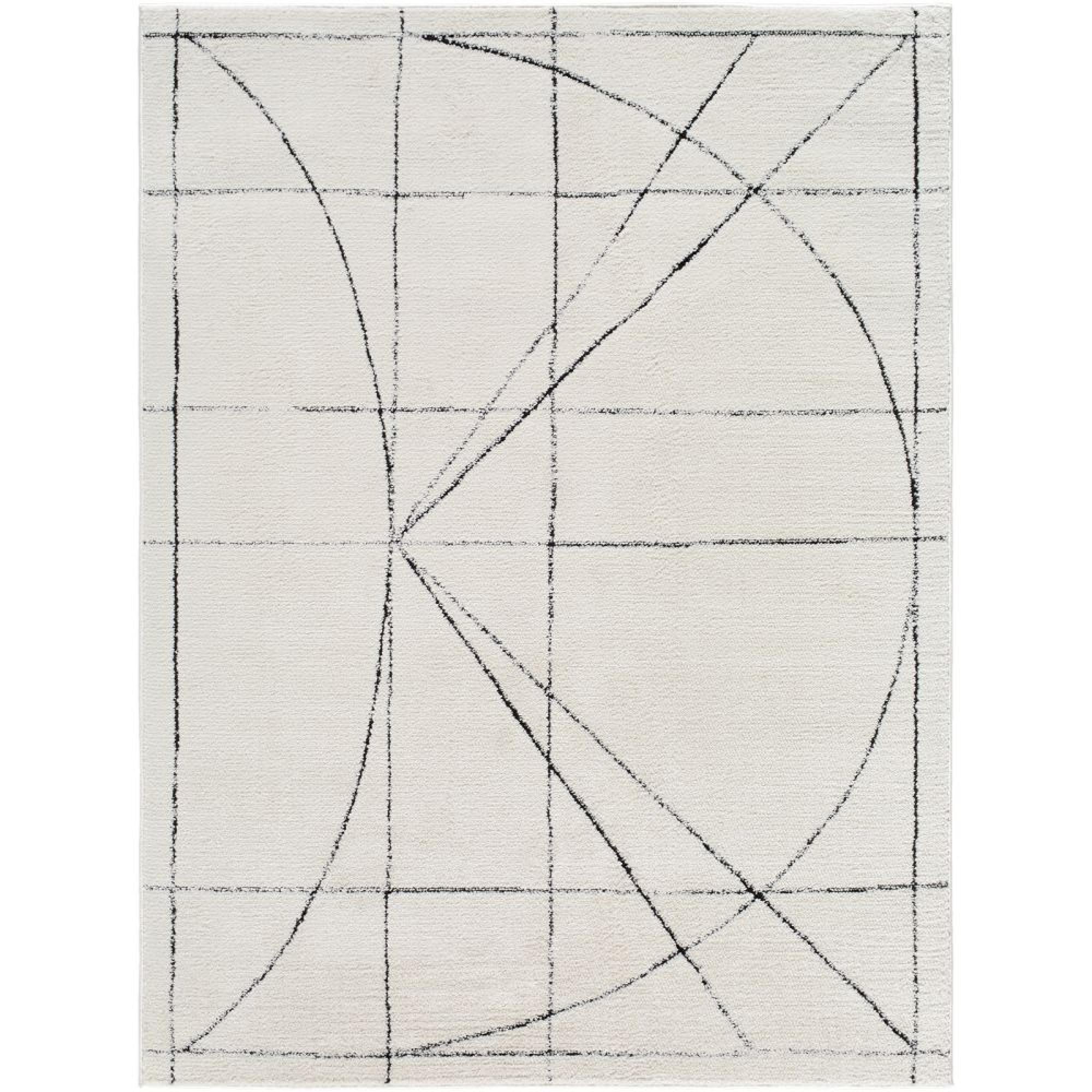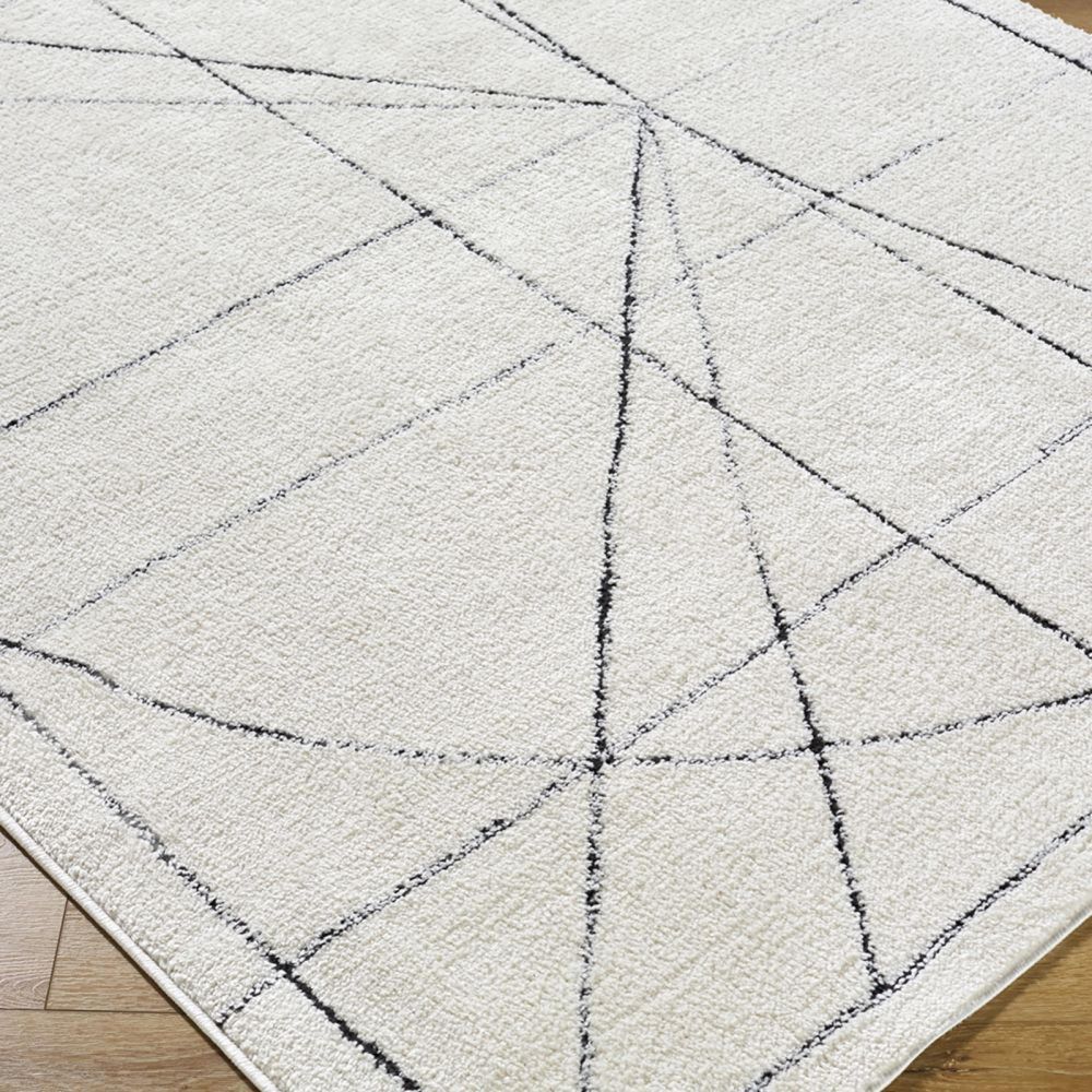 With its bold linear design, this rug offers a modern look made accessible through its soft high-low texture and simple color palette. The design balances contemporary style with timeless elegance.