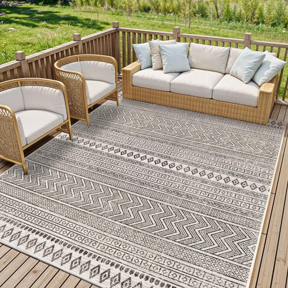 On a balcony or loggia, in the courtyard or veranda, on the patio or under the hammock, our outdoor rugs blend with all materials: a wooden deck, an aluminum veranda, a resin wicker garden set. Don't hesitate to play with layering for a chic and ultra-cozy boho decor.