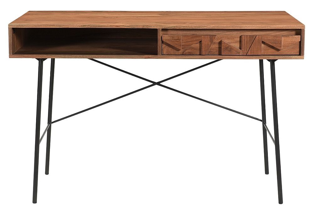 Axis has a cool loft living vibe with its black metal framing and carved Acacia wood. The block design is carved in such a way to offer different levels and shapes which add interest and allow the light to highlight different sections. There are a host of different pieces to work throughout the home.