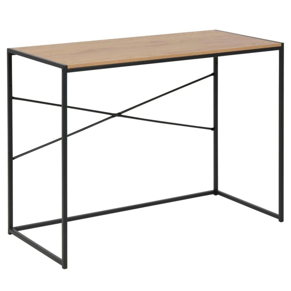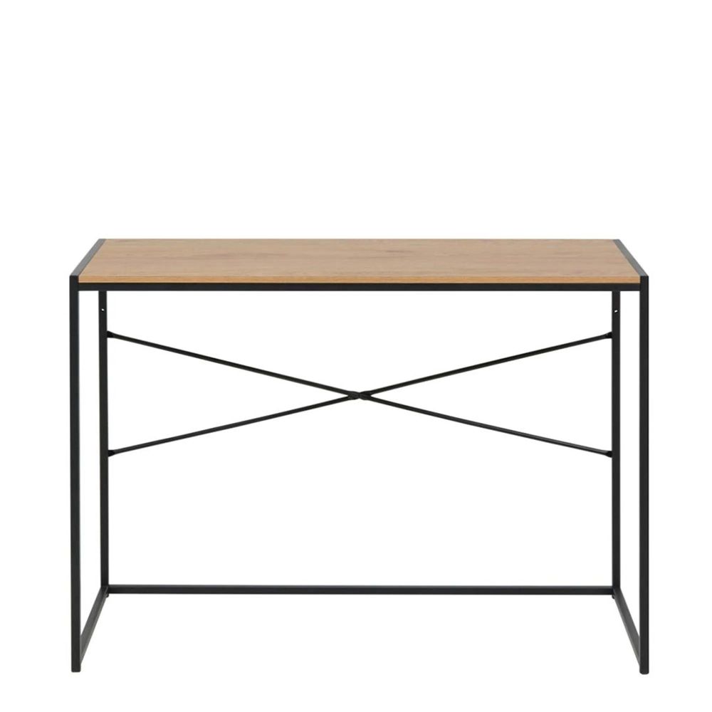 Item Code: 76368 Seaford rectangular office desk, top matt wild oak rough paper, base matt black rough powder coated steel. Designed in a modern industrial style, this rectangular desk table combines simple geometric shapes, enhanced by contrasting colours. The top boasts a wild oak decor and is complemented by a black steel frame. Such a versatile design will easily find its spot in any home.Free Delivery