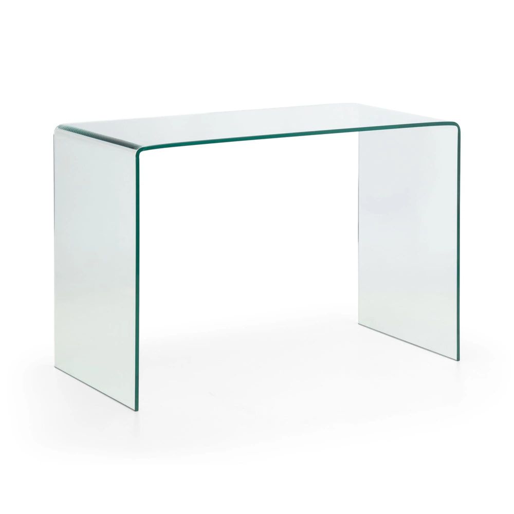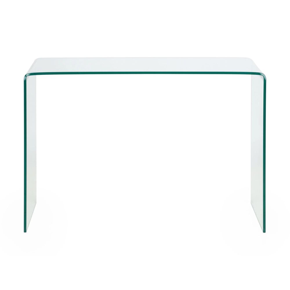 Item Code: AMA004 This Amalfi bent glass desk is beautifully crafted from a single sheet of tempered glass, bent and moulded into a curvacious design with no joins or fixings. From a collection of three pieces, the Julian Bowen Amalfi clear glass range will create the feeling of more space in your home, whilst adding a touch of elegance.