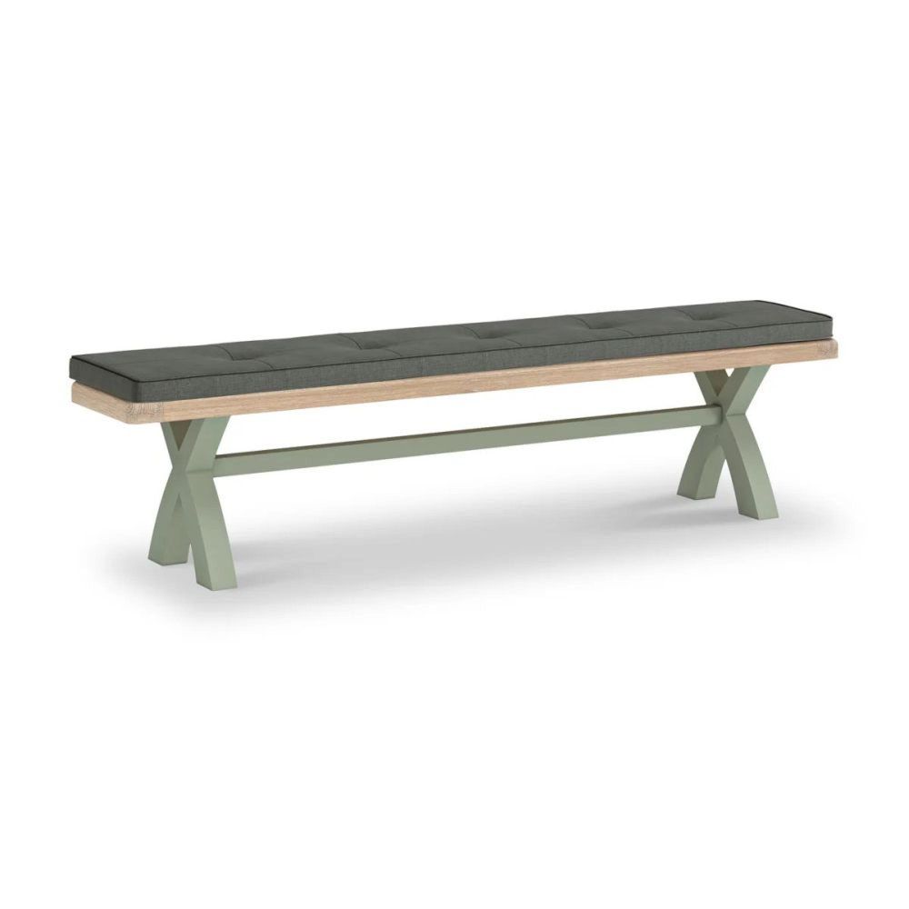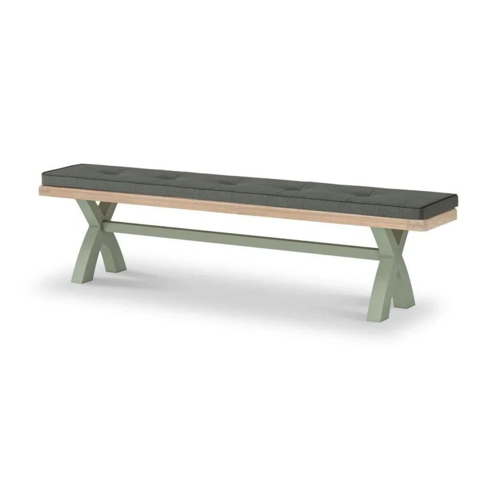 Bring a blend of classic charm and modern comfort to your dining space with the Salcombe Sage Oak and Charcoal Fabric Dining Bench with Cross Leg. Crafted with a focus on durability, style, and functionality, this dining bench is designed to complement both everyday meals and special gatherings.