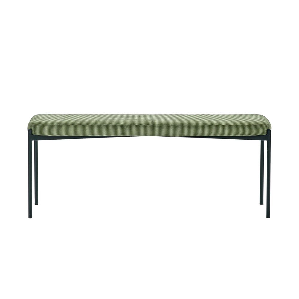 Item Code: LEO103 Transform your dining space with the sophisticated Leonie Bench in Green. Upholstered in plush, rich olive green velvet fabric, this bench offers both luxury and exceptional comfort. Its generously cushioned seat provides a cosy and inviting experience, perfect for long meals or relaxing moments. The sleek black slim-coated metal legs add a contemporary touch, enhancing its refined design. Minimal assembly is required simply attach the legs for a seamless setup. Whether paired with a dining table or used as a stylish accent, it effortlessly blends contemporary style with timeless elegance, making it a standout piece in any room.Free Delivery