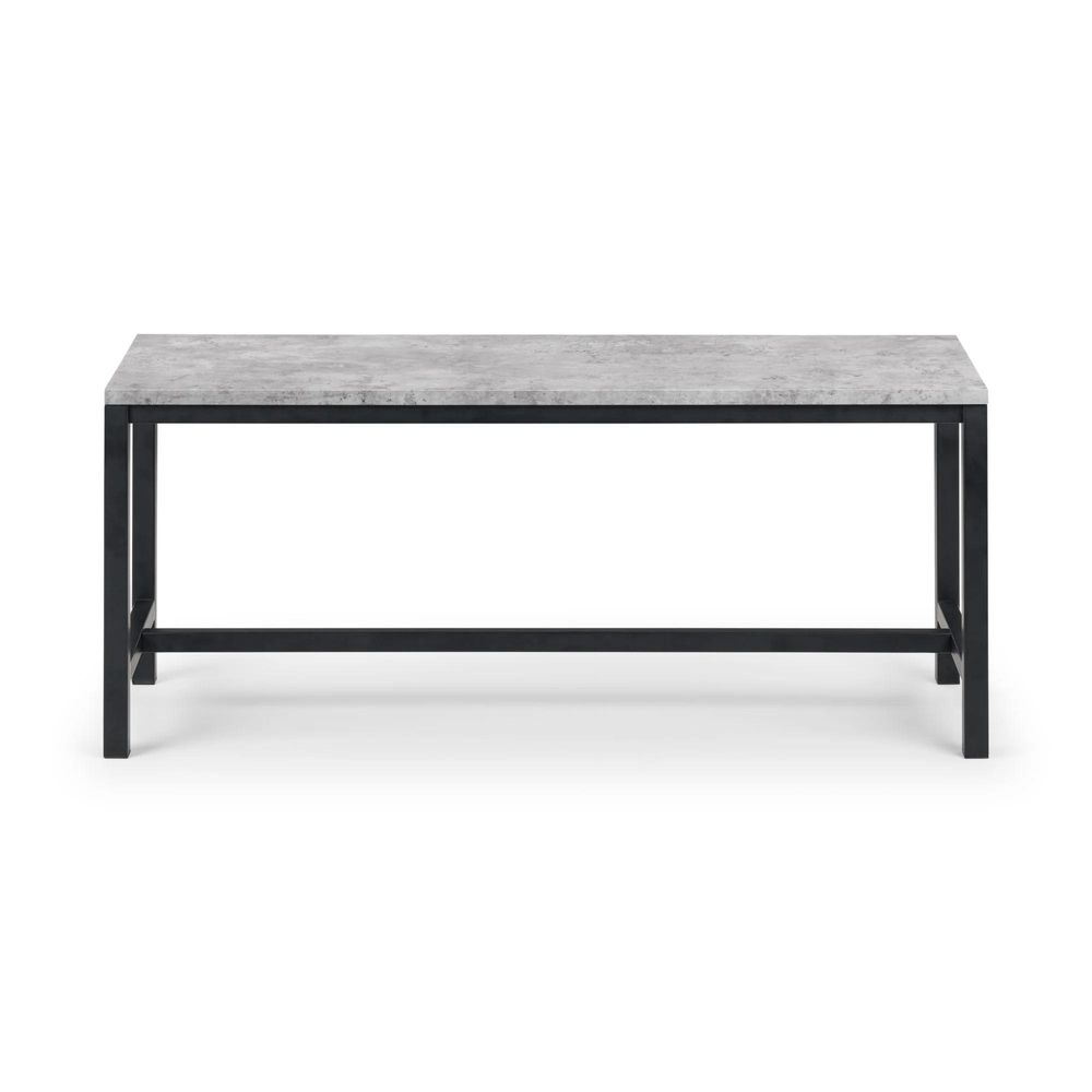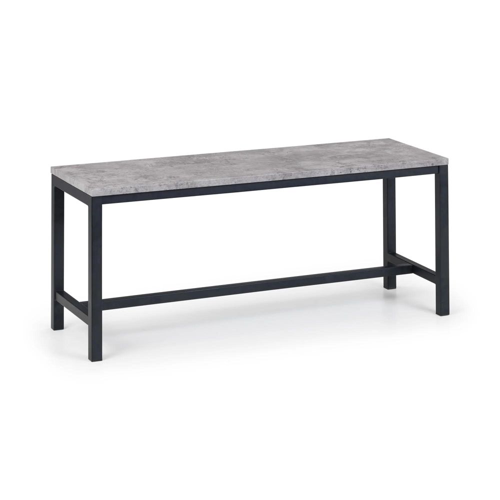 Item Code: STA105 Simplistic in design with a contemporary style, the Staten Bench will add a stunning industrial look to any living and dining area. Constructed from a black coated metal frame, complemented by a striking concrete effect tops, to create a very stylish, modern product. Part of the Julian Bowen Staten Dining and Occasional Collection.