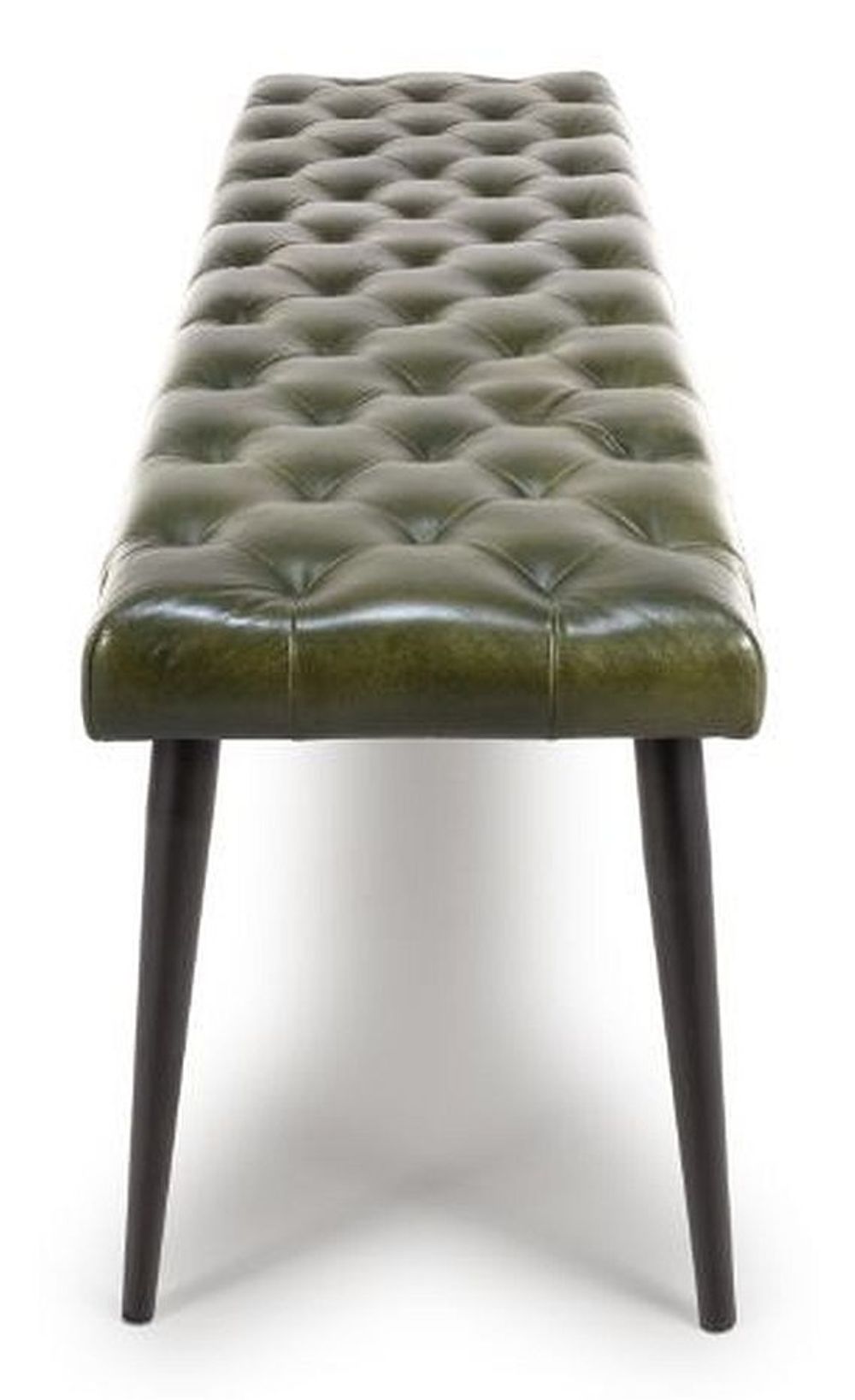 Item Code: BRA-169-GN This stunning bench is the perfect addition to any space. Crafted from green genuine buffalo leather and assembled for convenience, this timeless piece is sure to inject a touch of classic style into any room. Boasting a unique and classic design, it's sure to be a standout in any home.