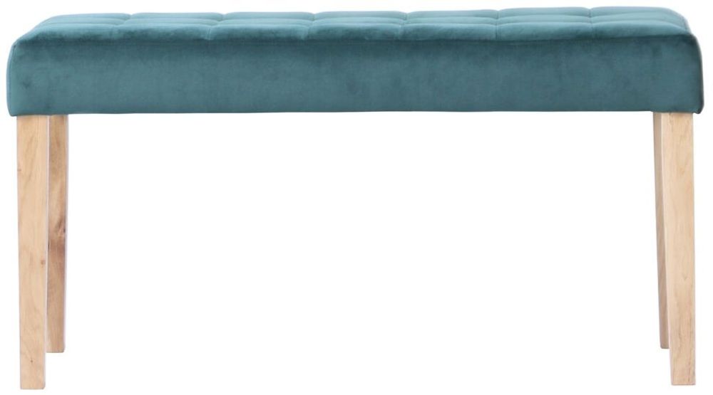 Upholstered in soft, luxurious green velvet, the bench features a sprung seat for lasting comfort and square stitching detail for a refined, tailored look. Supported by sturdy White Oak legs, it offers both strength and a natural, elegant finish. Its compact size makes it ideal for smaller dining areas or versatile seating throughout your home.