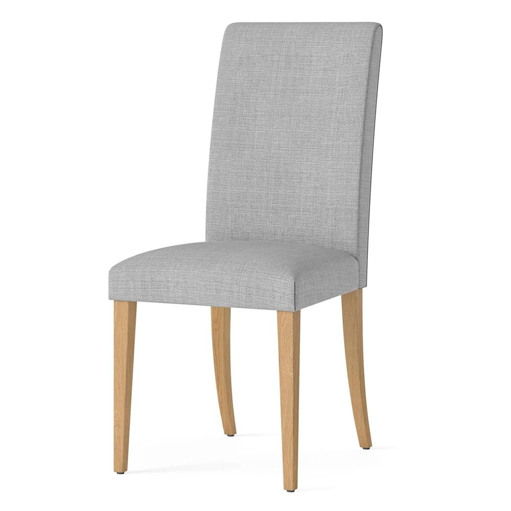Each chair is upholstered in a soft, textured beige fabric that introduces warmth and sophistication to your dining room. The high-back design ensures proper support during long meals, while the subtly curved rear legs—crafted from natural oak veneer—add a refined detail that is both sturdy and stylish. These chairs work seamlessly alongside Salisbury oak dining tables or as a versatile addition to any oak furniture collection.