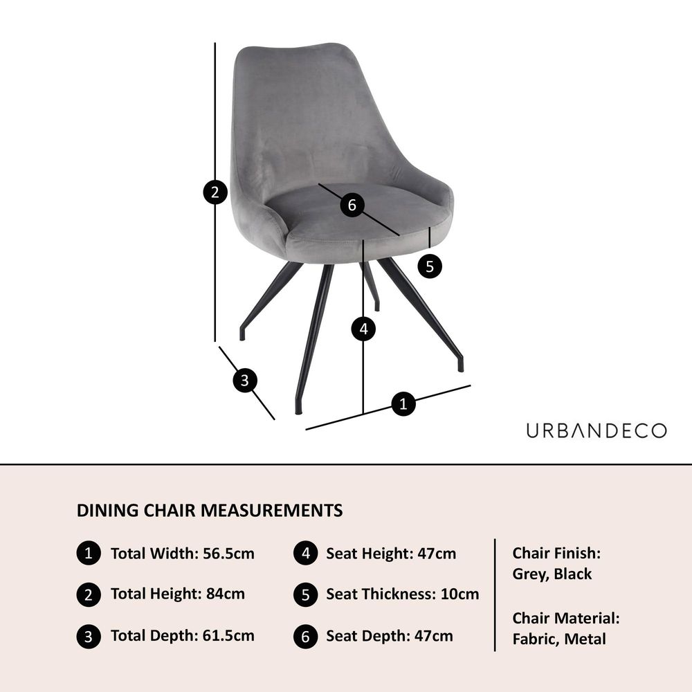 Upholstered in soft, high quality grey velvet, the chair offers a luxurious feel that invites you to sit back and enjoy every moment at the table. The swivel function adds a subtle modern convenience, allowing for easy movement and a more sociable dining experience. Supported by sturdy black metal legs, this chair promises both style and stability for years to come.
