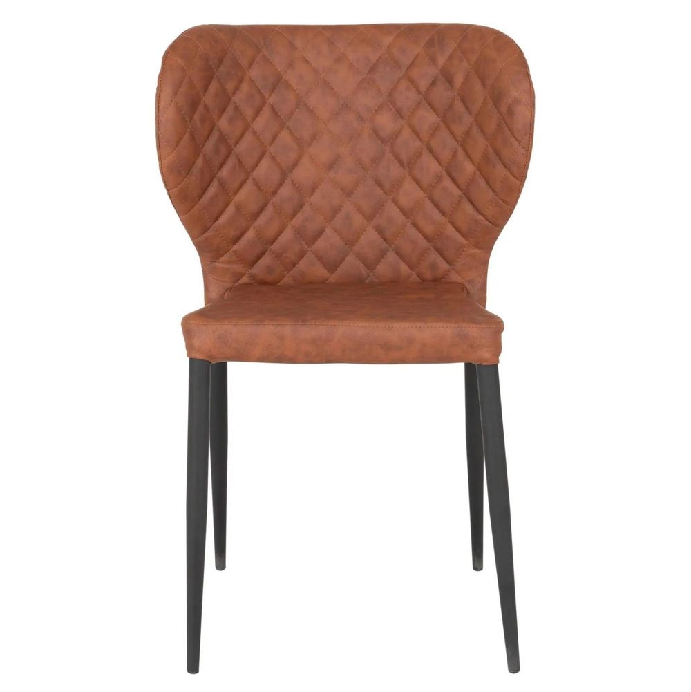 The gently curved backrest features elegant diamond-pattern stitching that enhances both the texture and the visual depth of the faux leather. Its supportive form ensures comfort through long meals and gatherings, while the splayed black powder-coated metal legs provide stability and a clean, contemporary finish. Designed with practicality in mind, each chair arrives partially assembled, allowing you to enjoy high-end seating with minimal setup.