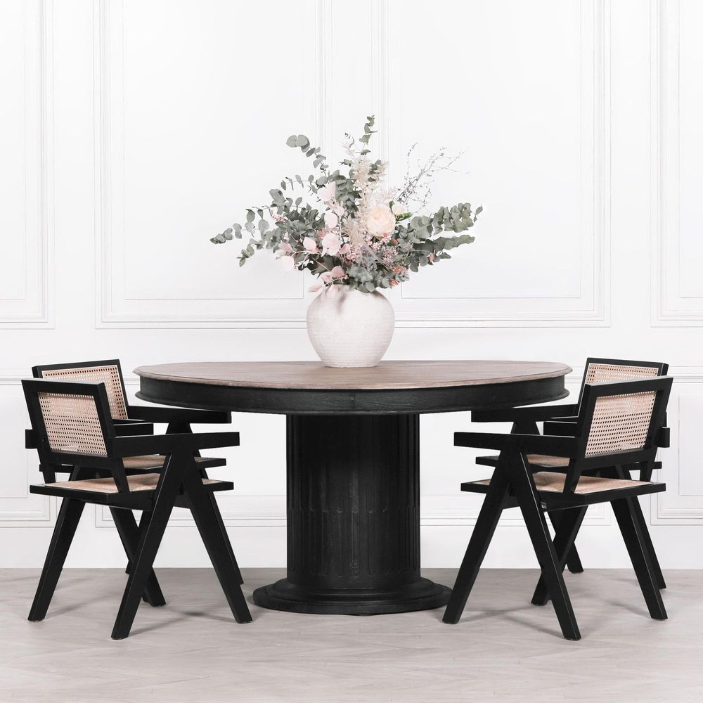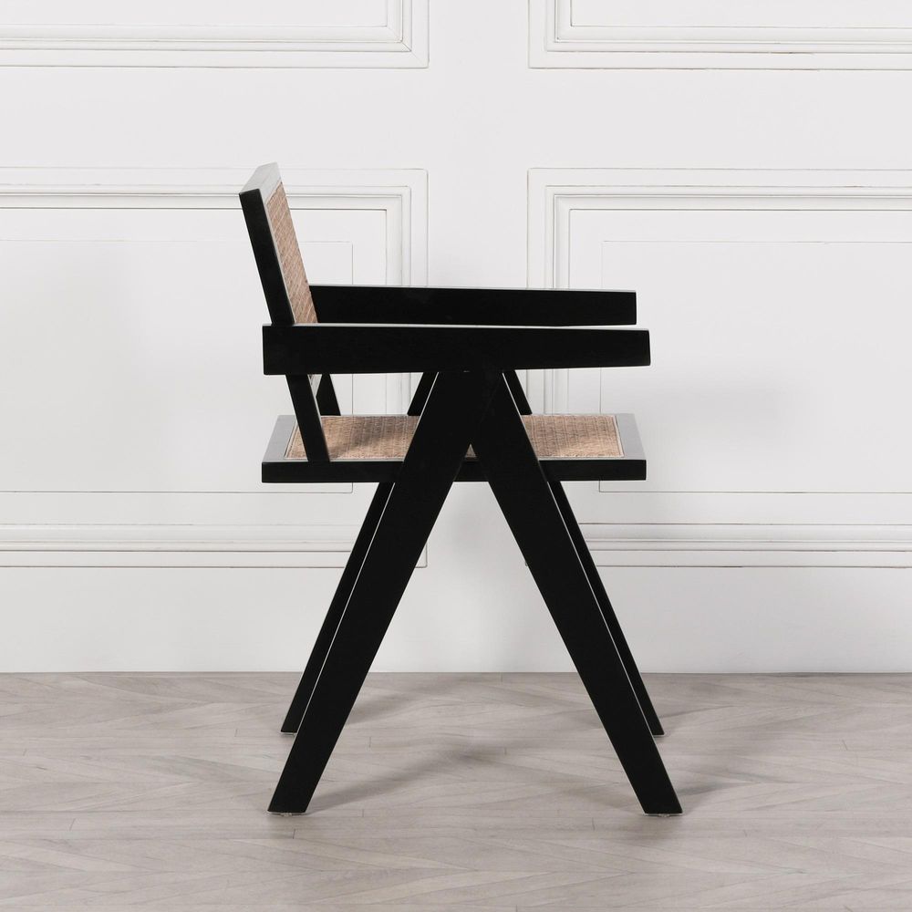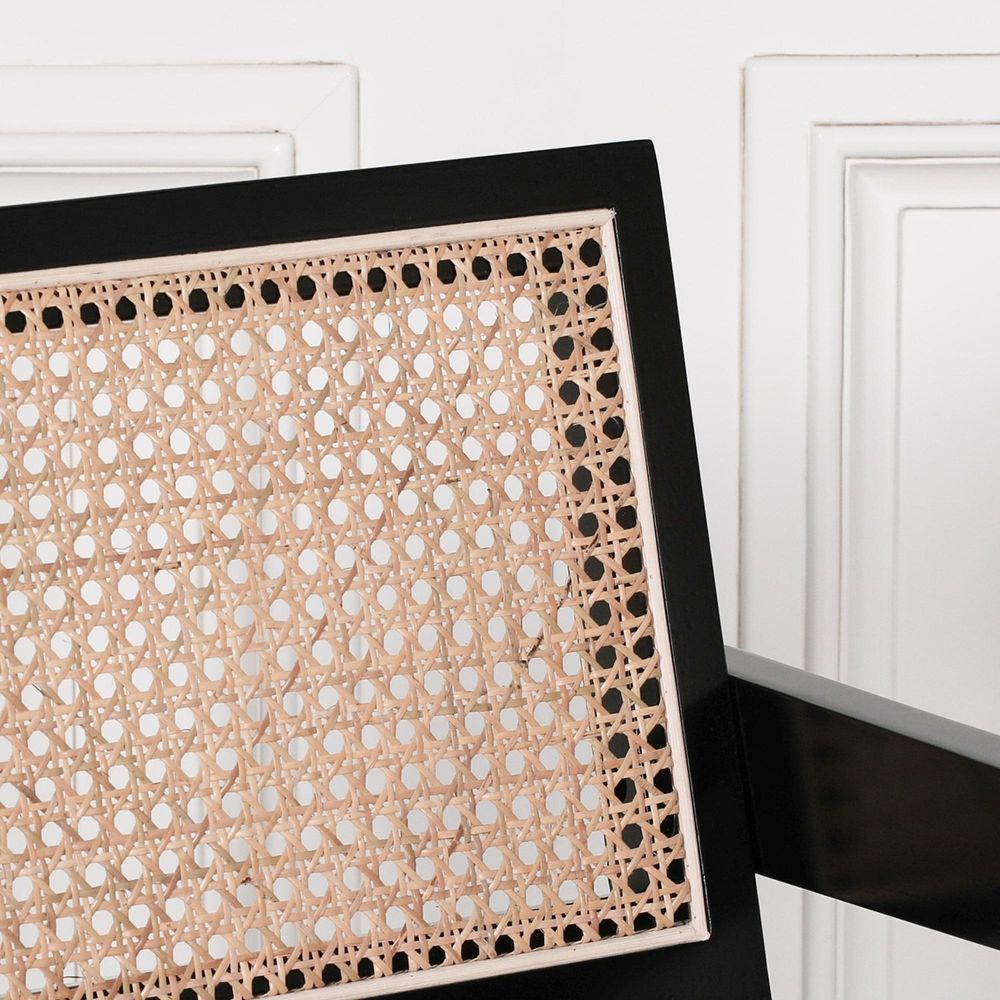 Item Code: WDC521 Black painted wooden cane dining chair in a design handcrafted from wood with a rattan seat and backrest.