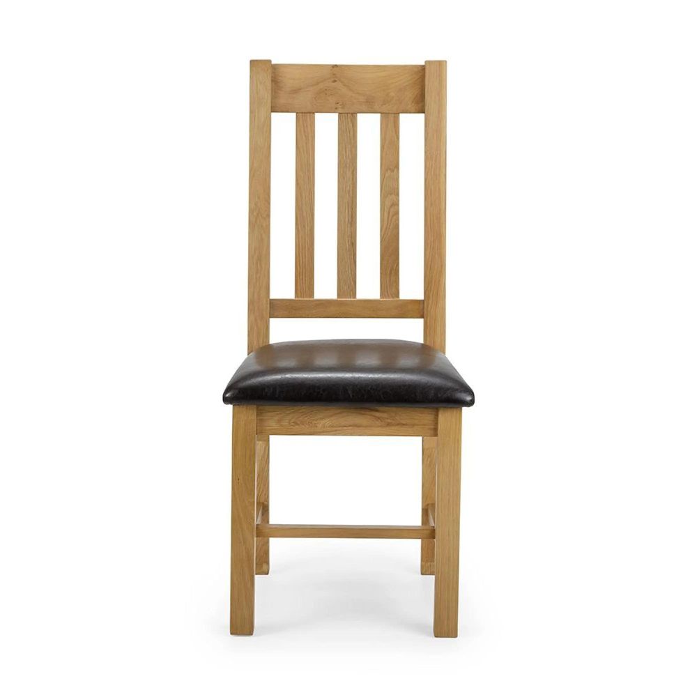 A classic styled dining chair constructed from solid White Oak in a beautiful waxed finish with a comfortable brown faux leather, padded seat. with a range of coordinating furniture from the Julian Bowen Astoria range to create a warm, traditional feel in your home.