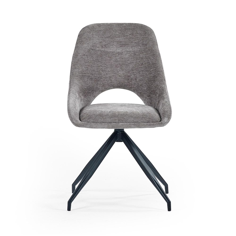 Item Code: JON101 Add a sleek, modern edge to your space with these effortlessly stylish swivel dining chairs. Upholstered in a scrumptious grey chenille fabric, it features a generously wide, cushioned seat designed for relaxed comfort during meals or everyday use. The smooth return swivel function makes movement feel effortless, while the bold black metal base provides a striking contrast and sturdy support. Ideal as statement dining room chairs, they bring a refined, contemporary touch to any interior. Assembly is simple, just attach the base. Table sold separately.