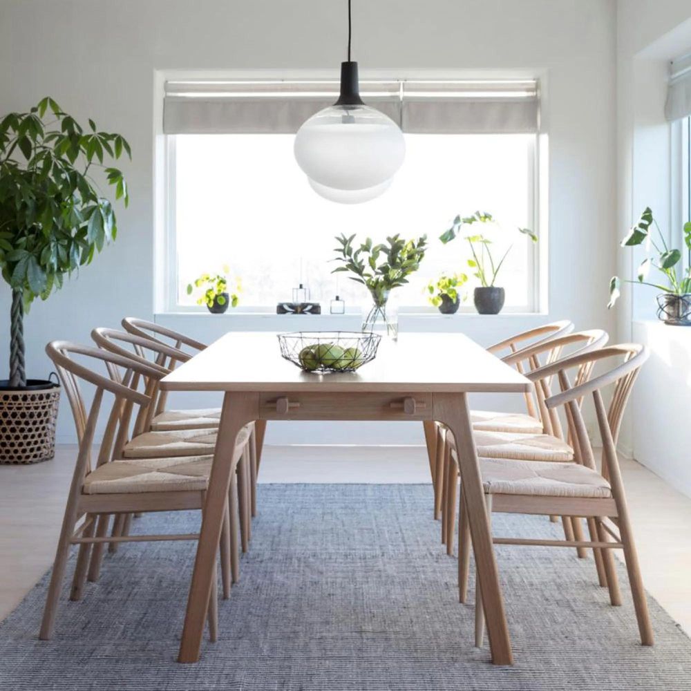 I_York dining chair with armrest, off white paper plaits and white pigmented oiled oak, base white pigmented oiled oak with envelope pattern, box 2 pcsCharacterised by soft Scandinavian aesthetics and natural materials, this dining chair can find its place in many homes thanks to its classic look. The plaited seat is made of off white paper rope, while the frame is made of oak treated with white pigmented oil.