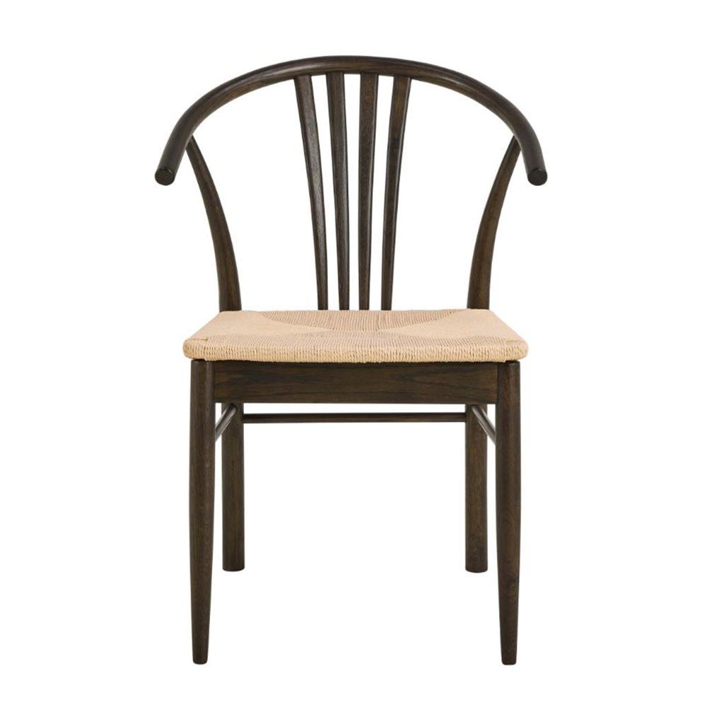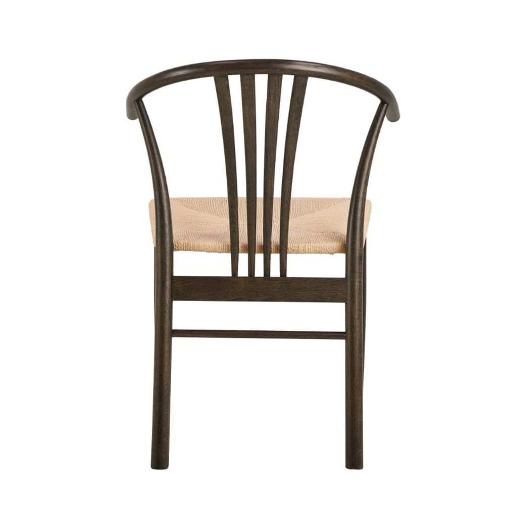 I_York dining chair with armrest, white paper plaits and matt smoked NC lacquered oak, base matt smoked NC lacquered oak with envelope pattern, box 2 pcsCharacterised by soft Scandinavian aesthetics and natural materials, this dining chair with a curved backrest can find its place in many homes thanks to its classic look. The plaited envelope seat is made of white paper rope, while the rest of the chair is made of smoked, lacquered oak.