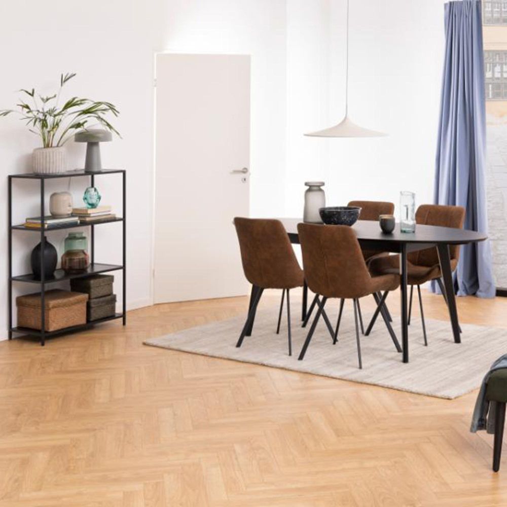Item Code: 96119 Waylor dining chair, Preston fabric camel 24 FR, base matt black rough powder coated steel with square stitchings and zip, box 2 pcs. Change the atmosphere in your dining room with this camel-brown dining chair. The dining chair brings the sense of warmth. It is characterized by a delicate contour that results in a welcoming feel. The seat has raised edges that define the seating area and is decorated with square stitching that creates the subtle dimple effect. Covered in soft fabric- it is also equally practical and hard-wearing.Free Delivery