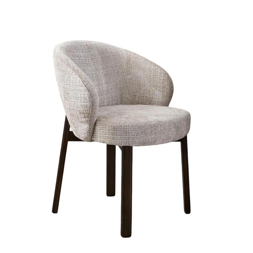 Item Code: 109541 Darlene dining chair with armrest, Juto fabric beige 4 FR, base matt smoked NC lacquered oak with 3 fields stitchings and pocket springs, box 2 pcs. This dining chair with armrests embodies a modern design without compromises. Its sleek, rounded seat is wrapped in a beige fabric with a vibrant, textured surface. Featuring pocket springs, the chair provides great seating comfort. Paired with round smoked oak legs finished with lacquer, this design imbues with warmth and sophistication. Dining chair made of fire-resistant materials. FSC certified.Free Delivery