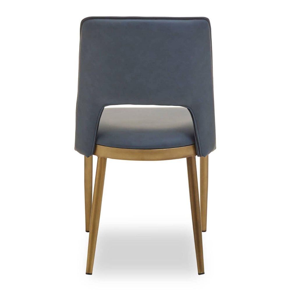 Gilden Dining Chair - Set of 2 - Blue Faux Leather with Gold Metal Legs