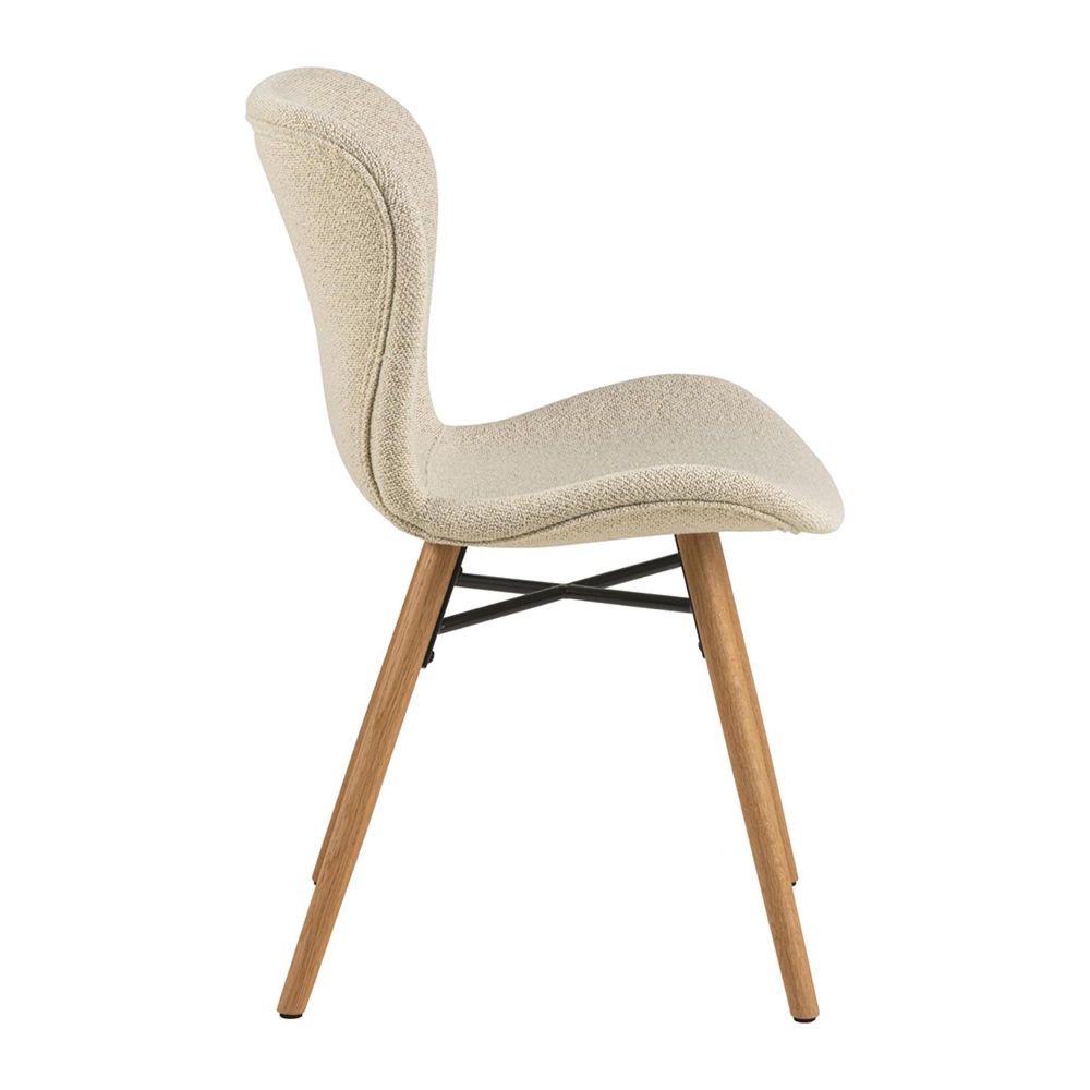 Item Code: H000023358 Batilda -A1 dining chair, Monza fabric cream 90 FR, base oiled oak, box 2 pcs. This dining chair balances style and comfort and infuses any dining space with a modern aesthetic. Upholstered in a soft cream boucle fabric, the seat provides a supportive and comfortable seating experience. When combined with a sturdy oiled oak base, the chair imbues the room with a sense of cosiness. Made of fire-resistant materials.Free Delivery