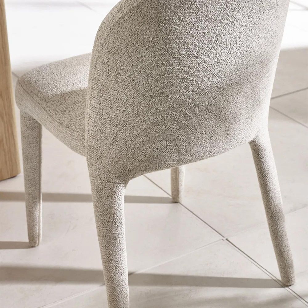 Item Code: HOL511 Bring soft sophistication to your dining space with this elegant chenille upholstered dining chair. Wrapped in pearl sand, beige, chenille fabric,its smooth curves,foam-padded seat, and subtly rounded back provide both comfort and style.The fully upholstered legs maintain a seamless, contemporary look, making it a versatile choice for modern dining rooms, kitchens,or breakfast nooks. Its effortless design adds understated luxury without the need for assembly.