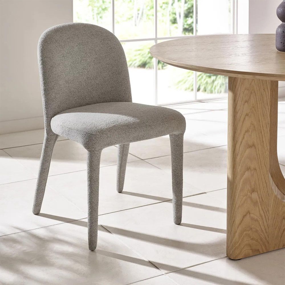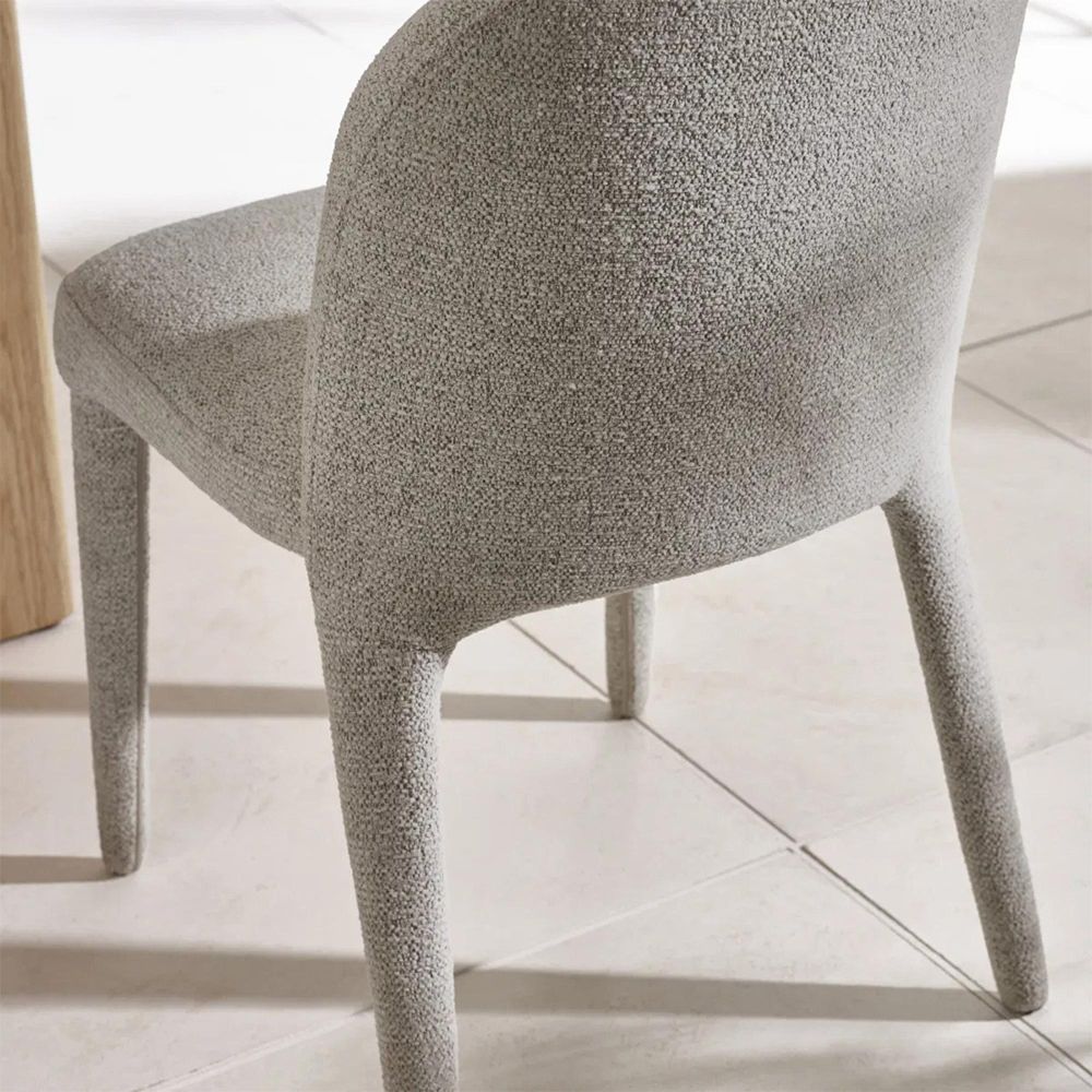 Item Code: HOL512 Bring soft sophistication to your dining space with this elegant chenille upholstered dining chair. Wrapped in graphite grey chenille fabric, its smooth curves, foam-padded seat, and subtly rounded back provide both comfort and style. The fully upholstered legs maintain a seamless, contemporary look, making it a versatile choice for modern dining rooms, kitchens, or breakfast nooks. Its effortless design adds understated luxury without the need for assembly.