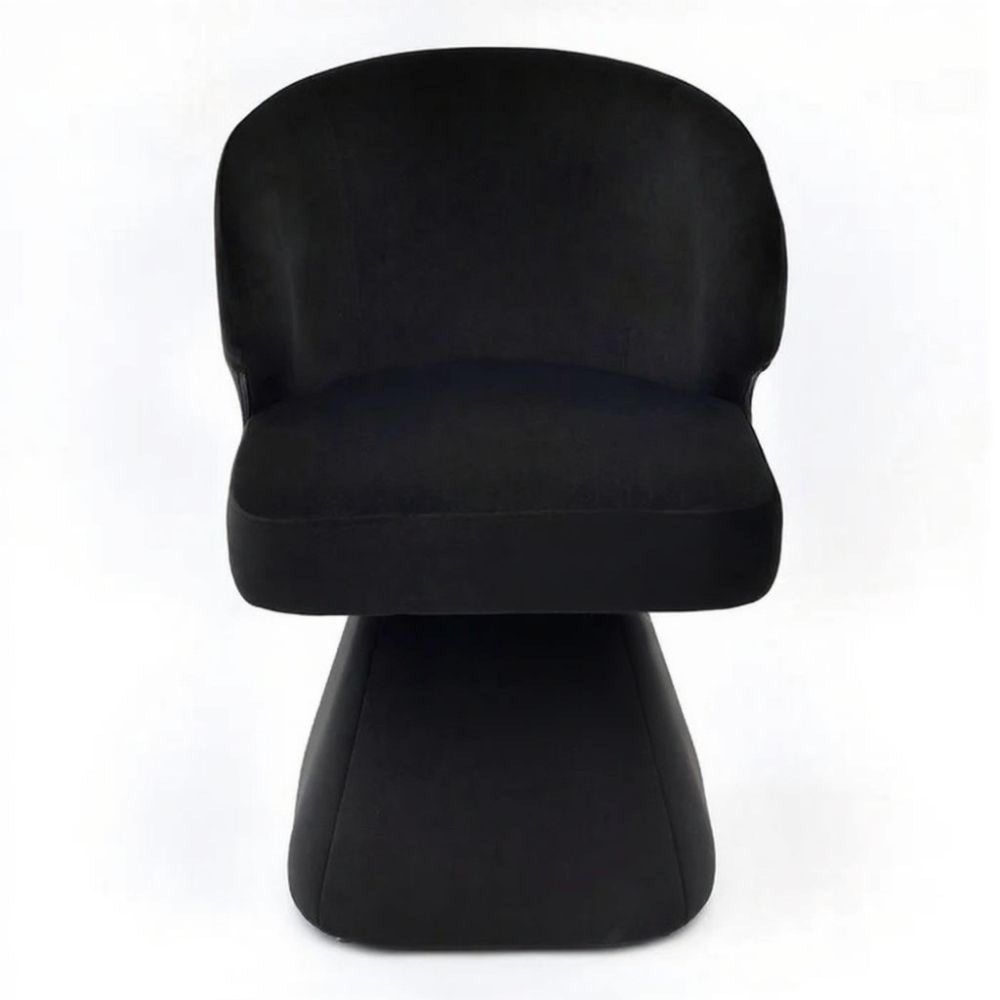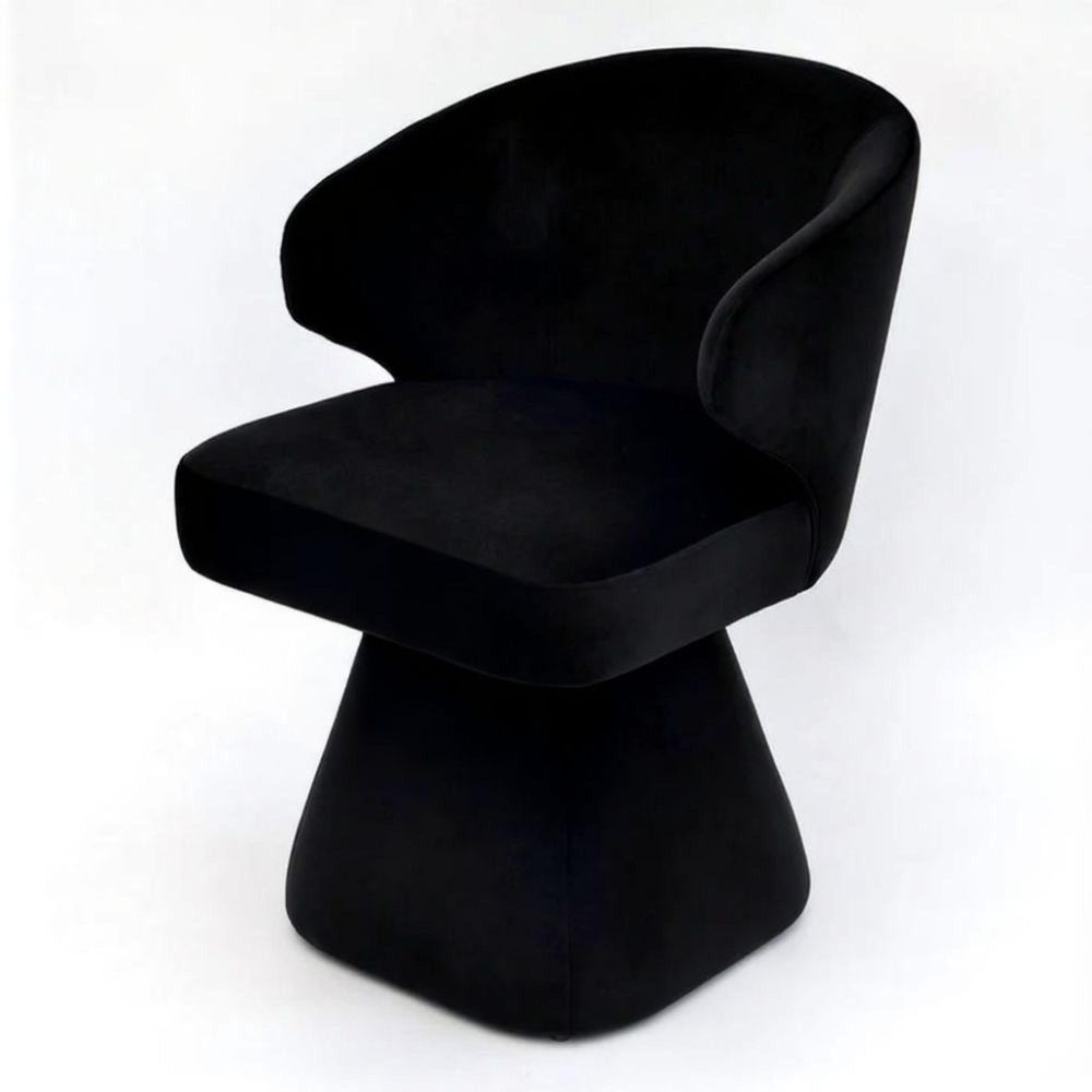 The Riya Black Fabric Sculpted Barrel Swivel Dining Chair brings a refined blend of comfort, style, and functionality to your dining space. Upholstered in soft, durable black fabric, this chair pairs a sculpted barrel design with a low-profile back, creating a contemporary silhouette that fits effortlessly into modern dining rooms. Its pedestal base with smooth 180-degree swivel movement ensures versatility and ease of use, whether for daily meals, family gatherings, or special occasions. The ergonomically curved back and cushioned seat provide lasting support, combining practical comfort with elegant design. Built on a robust wood frame, this chair is crafted to deliver stability and long-lasting quality.