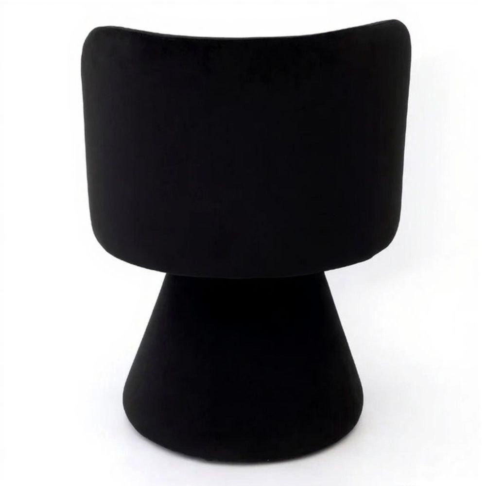 Upholstered in a rich black fabric, the chair presents a clean, contemporary profile. Its cone-shaped pedestal base and durable wood frame ensure long-term stability, giving the piece a balanced blend of style and strength. The low back design further enhances its streamlined silhouette, making it a natural fit for modern and contemporary dining settings. It is also available in white and moss green fabric options, allowing coordination across various room aesthetics.