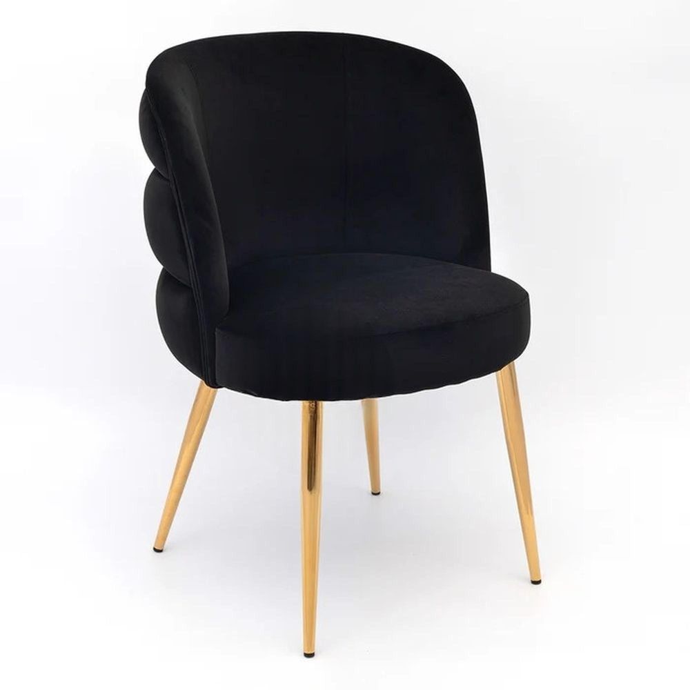 The channeled stitching enhances the chair’s contour, giving it a stylish, tailored look that pairs effortlessly with contemporary interiors. Tapered gold-finished metal legs complete the design with a polished touch, creating a striking contrast against the black velvet. This chair is also available in white and wine red, allowing you to coordinate your dining room with ease.