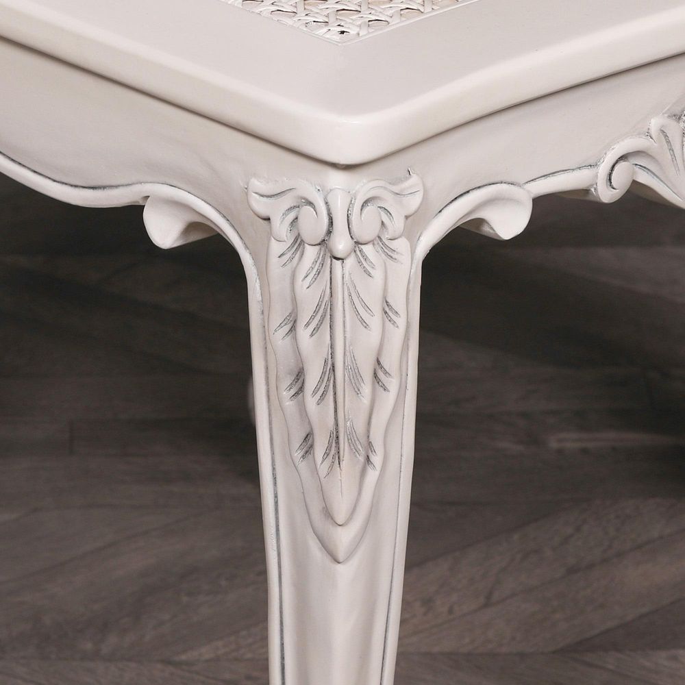 Mahogany and Rattan Back Carved Chair - Off White