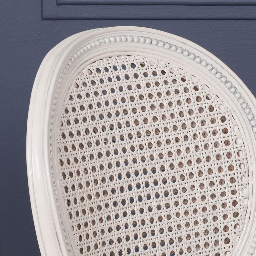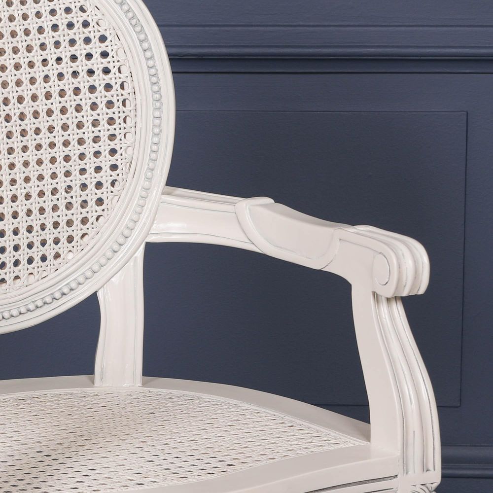 Item Code: MWF07 This Chateau dining armchair is a perfect home decor piece. Expertly crafted from mahogany wood and rattan for a classic feel. Luxuriously padded and upholstered in a breathable, white fabric, it offers superior comfort and style. Warmly finished and intricately woven, it adds an inviting feeling to any space. Sold in pairs, it is a great choice for any home.