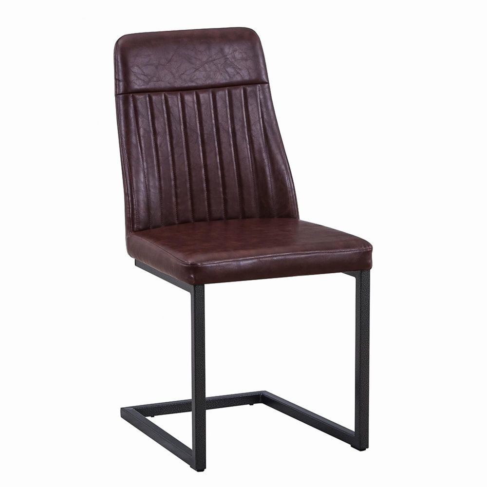 Vintage Dining Chairs - Set of 2 - Brown Faux Leather - Cantilever Base