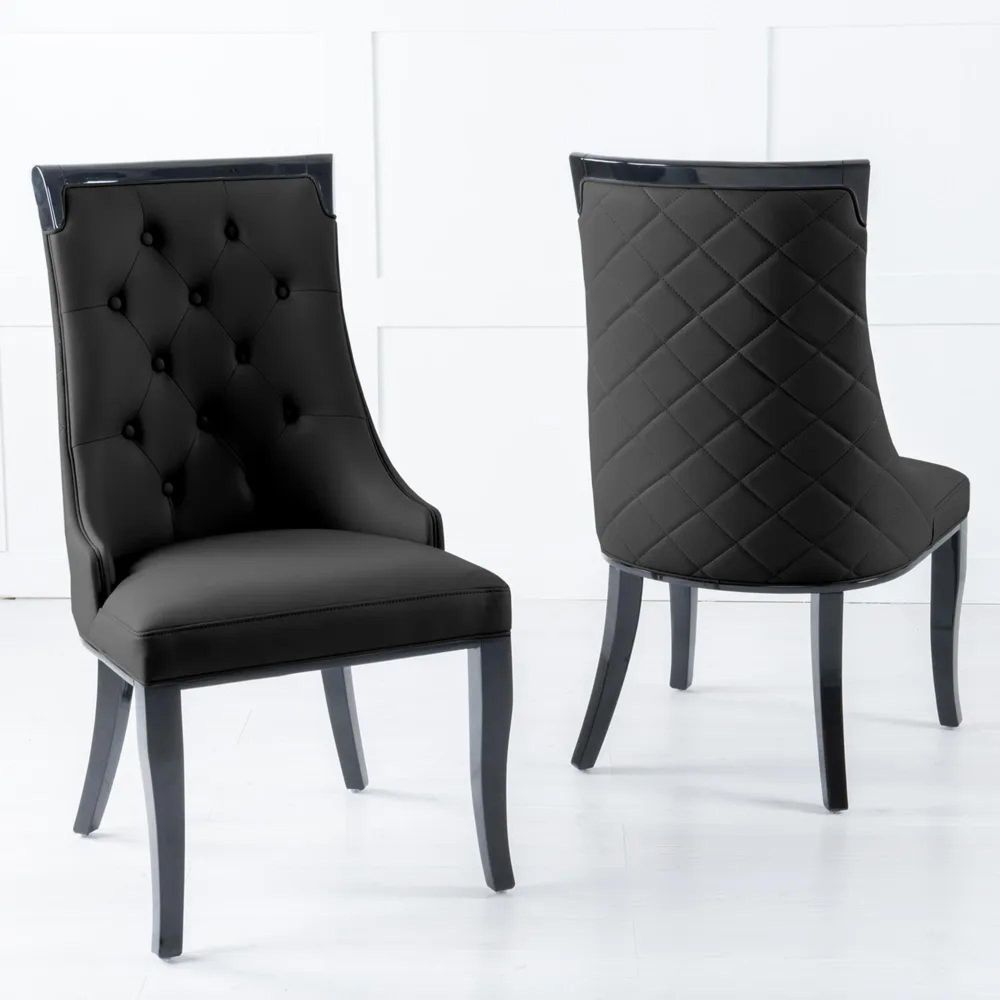 Bring refined elegance and lasting comfort to your dining space with the Carmela Black Leather Dining Chair. Designed for those who appreciate understated luxury, this high-back chair combines timeless detailing with everyday functionality. Upholstered in rich black faux leather, its plush surface is soft to the touch while offering supportive seating for long meals and memorable gatherings.