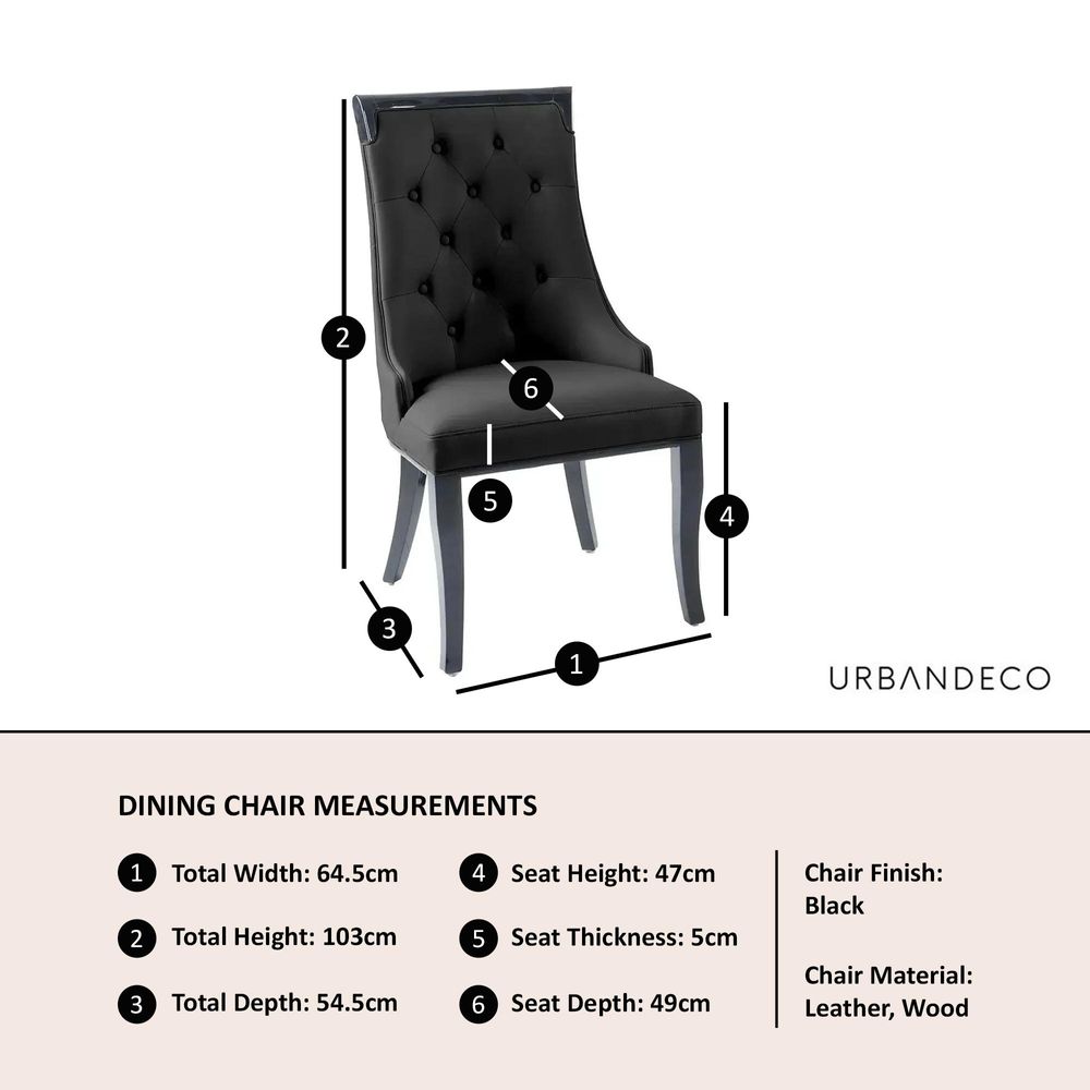 The deep diamond-stitched backrest, accented with classic button tufting, adds texture and depth to its silhouette. Tapered black solid wood legs provide stability and a clean, tailored finish, making it a seamless match for dark wood and marble dining tables alike.