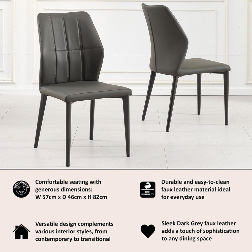Bring home the Harrow Dark Grey Leather Dining Chair to enjoy the perfect blend of beauty, craftsmanship, and everyday function. Whether used as part of a complete dining set or as a standout piece, it's a smart and stylish choice that complements any refined space.