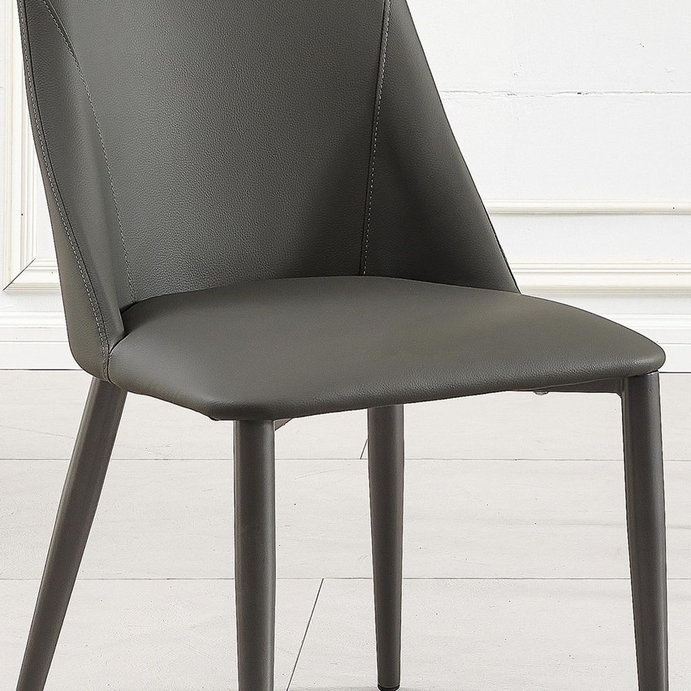 The gently sloped backrest, detailed with subtle stitching, creates a supportive shape that encourages good posture while adding a tailored look to your dining space. The slimline profile is ideal for smaller rooms or open plan layouts, while the dark grey tone pairs effortlessly with modern, neutral, or monochrome interiors.