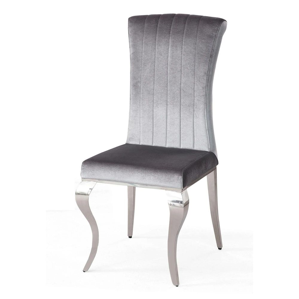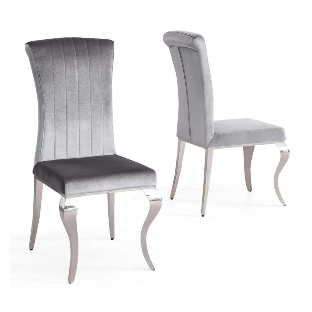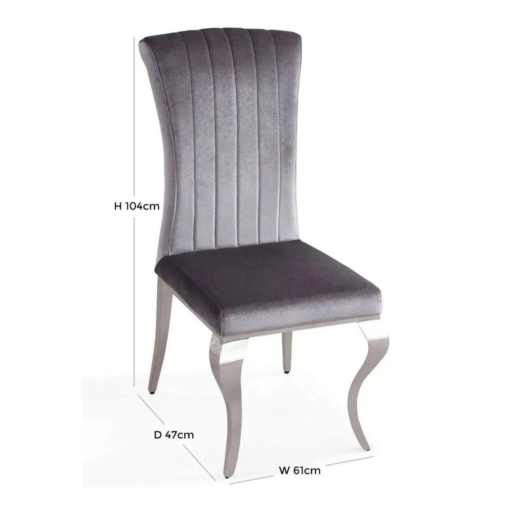 At first glance, the Louis Chair captivates with its plush grey velvet upholstery soft to the touch and irresistibly inviting. The gently padded seat and backrest provide superior comfort for long dinners, leisurely conversations, or elegant hosting. The gracefully curved Cabriole style stainless steel legs in a polished chrome finish bring a classic meets contemporary flair, adding a gleaming contrast to the deep grey velvet.