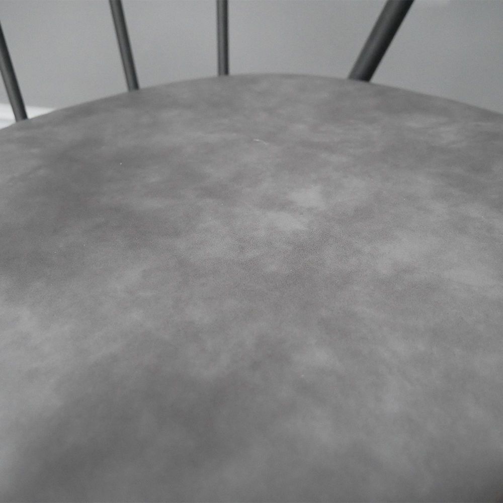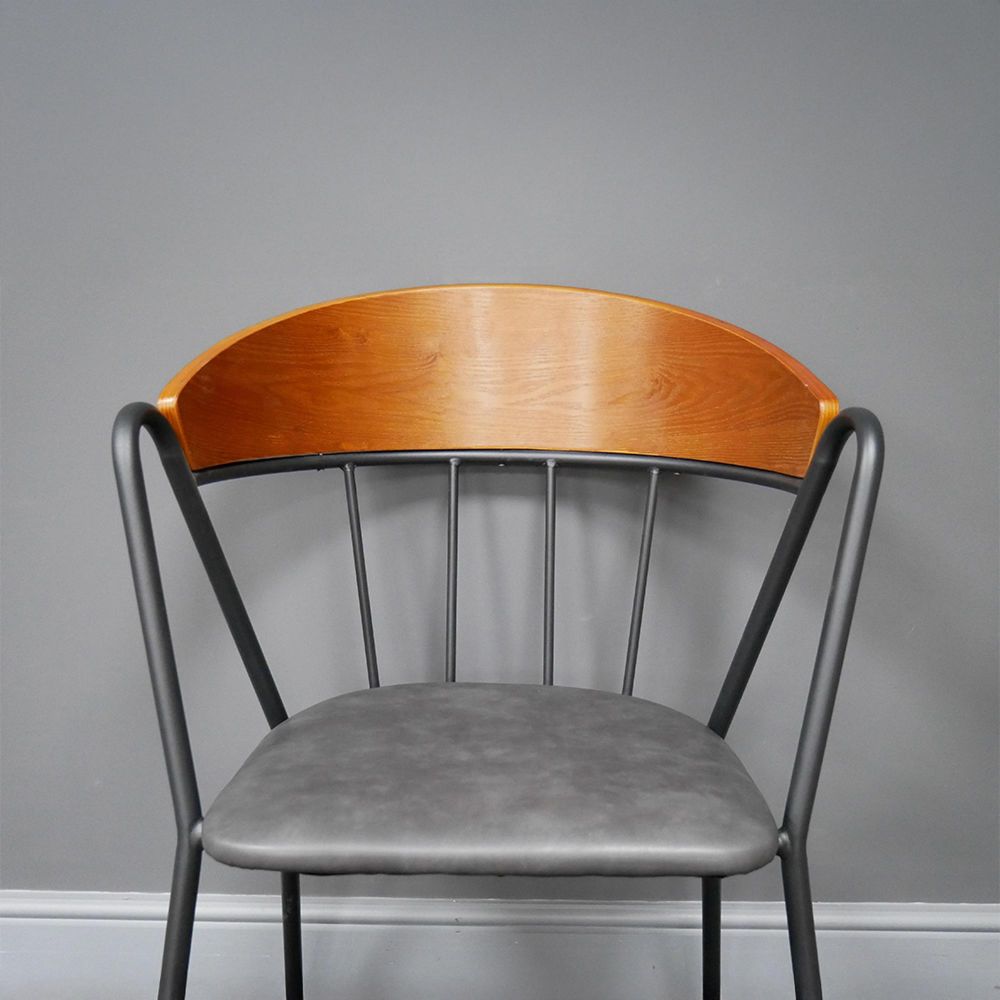 Metal frame, PU leather, plywood back. Dark grey leather finish.