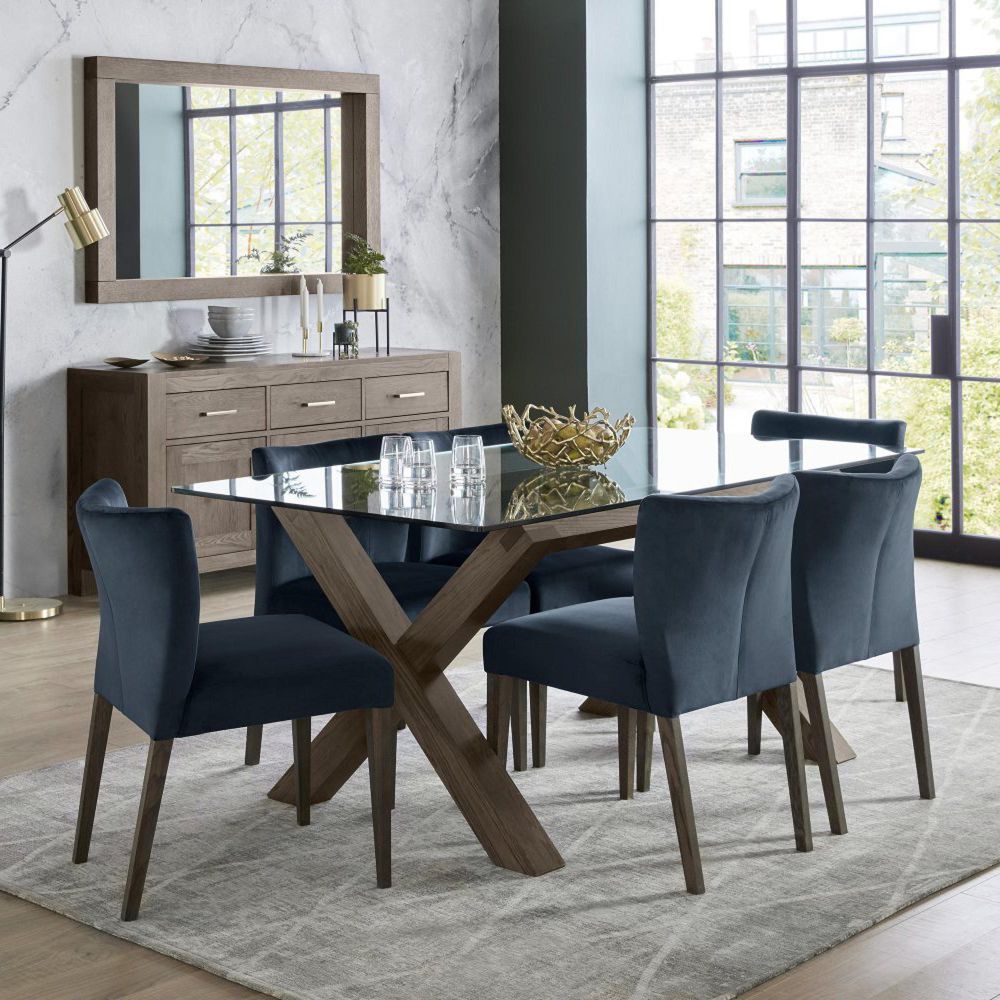 Item Code: 2690-09U-DB Bold, striking and with enormous character the Turin Dark Oak dining range will add an indulgently warm feel to any room. With rustic oak veneers set in solid American oak frames in a rich dark oiled finish Turin dining naturally embodies a casual and contemporary aesthetic. This relaxed yet stylish range offers plenty of versatility from a selection of table sizes to suit your space to the varied option of chair styles to fashion your look. Choose from low back upholstered chairs for that sleek and ultramodern look to the wide slatted back chair option that allows for a more intimate option. Turin is a perfect blend of simplicity and sophistication with cabinet pieces that boast sharply refined geometric shapes and offer both antiqued bronze and brushed nickel handles allowing you to refresh the look whenever you want! The use of superior Blum soft close runners affirms the attention to detail in defining this range's modern appeal.