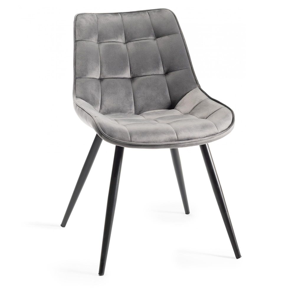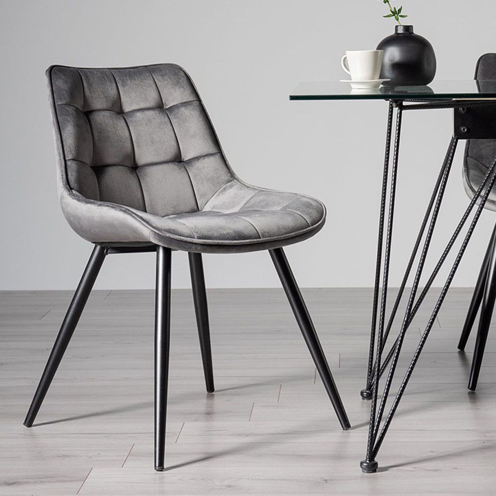 Seurat Dining Chairs - Set of 2 - Grey Velvet - Black Legs