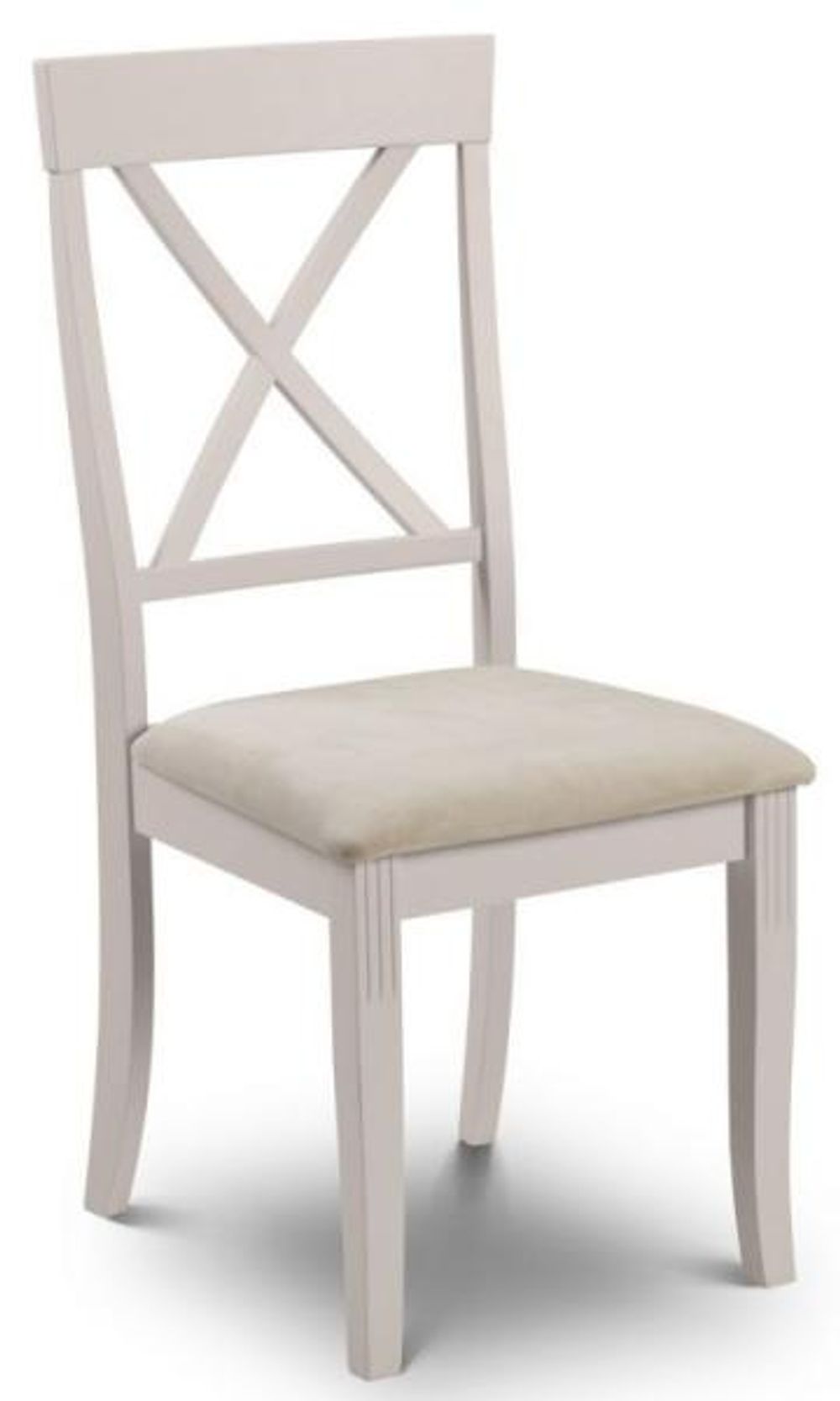 Item Code: DAV202 Get comfy with the Davenport dining chair. Crafted from solid rubberwood and a ivory faux suede upholstered seat, padded for you to reach maximum comfort, this is the ideal dining chair to please your dinner guests. In an elegant elephant grey lacquered finish, suitable for any dining room decor. A wide range of co ordinating items are available in the Julian Bowen Davenport collection.