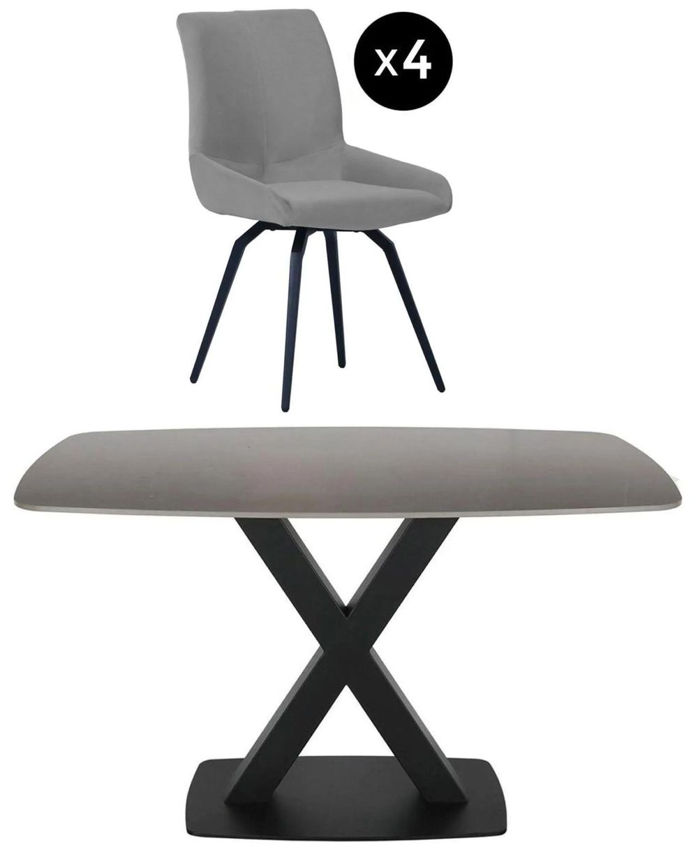 Vernal Dining Set - 4 Seater - 130cm - Grey Sintered Stone - 4 Malcom Grey Fabric Swivel Chair