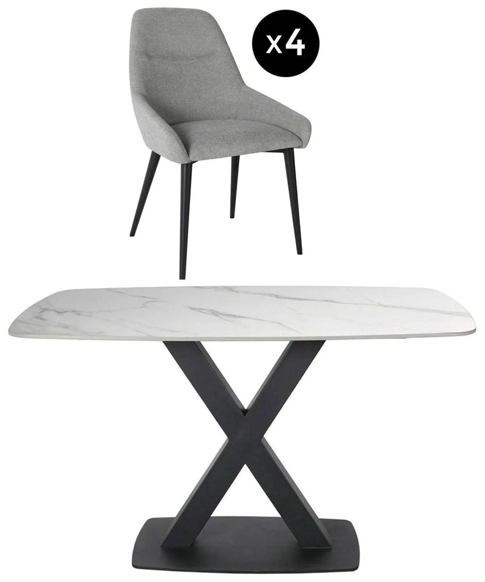 Bring a blend of style and durability to your dining space with the Vernal 4 Seater Dining Set. Crafted for both daily use and special gatherings, this set combines the elegance of a white sintered stone tabletop with the comfort of Claflin grey fabric chairs. Each piece reflects careful attention to design, quality materials, and functional excellence.