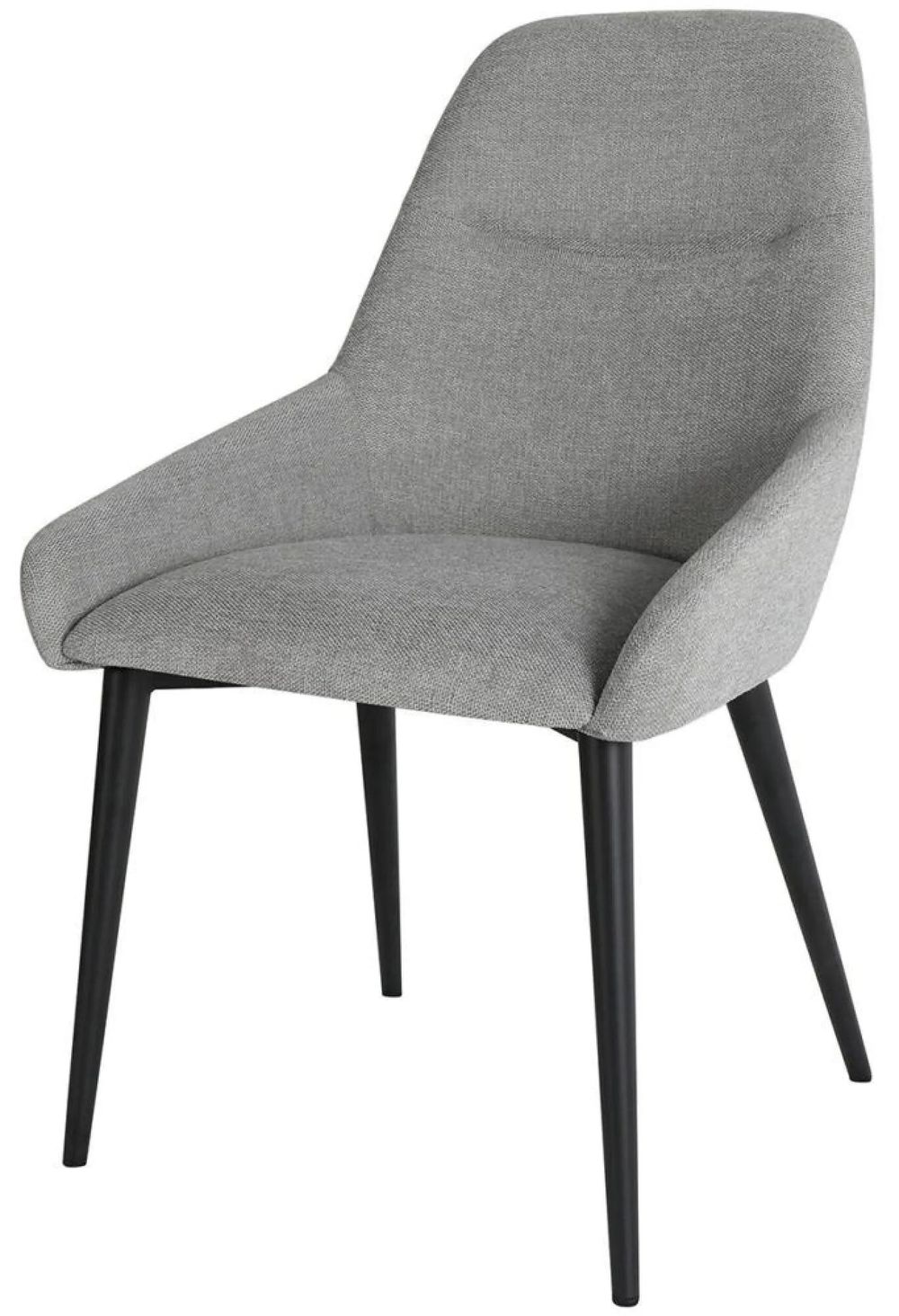 Claflin Grey Fabric Chairs – Low armrest, elegant profile, and tapered matt black metal legs for comfort and style. Available in Dark Grey and Grey for a coordinated look.