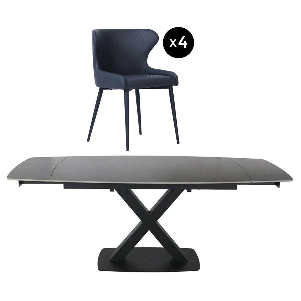 Vernal Extending Dining Set - 4-8 Seater - 140cm-200cm - Grey Sintered Stone - 4 Langley Grey Faux Leather Chair