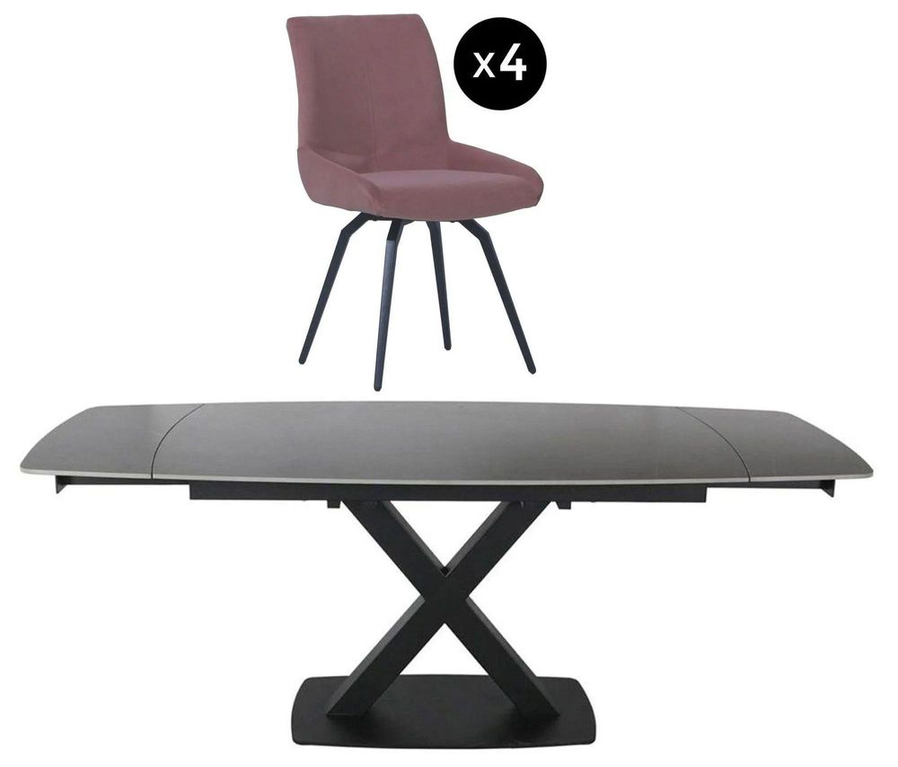 Vernal Extending Dining Set - 6-8 Seater - 160cm-240cm - Grey Sintered Stone - 6 Malcom Pink Fabric Swivel Chair
