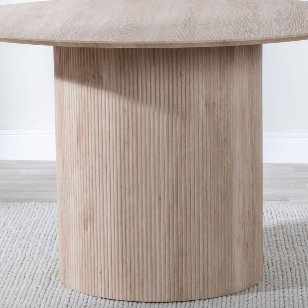 Bern Fluted Oak Effect 4 Seater Round Dining Set - 4 Ion Cream Boucle Teddy Fabric Swivel Dining Chair